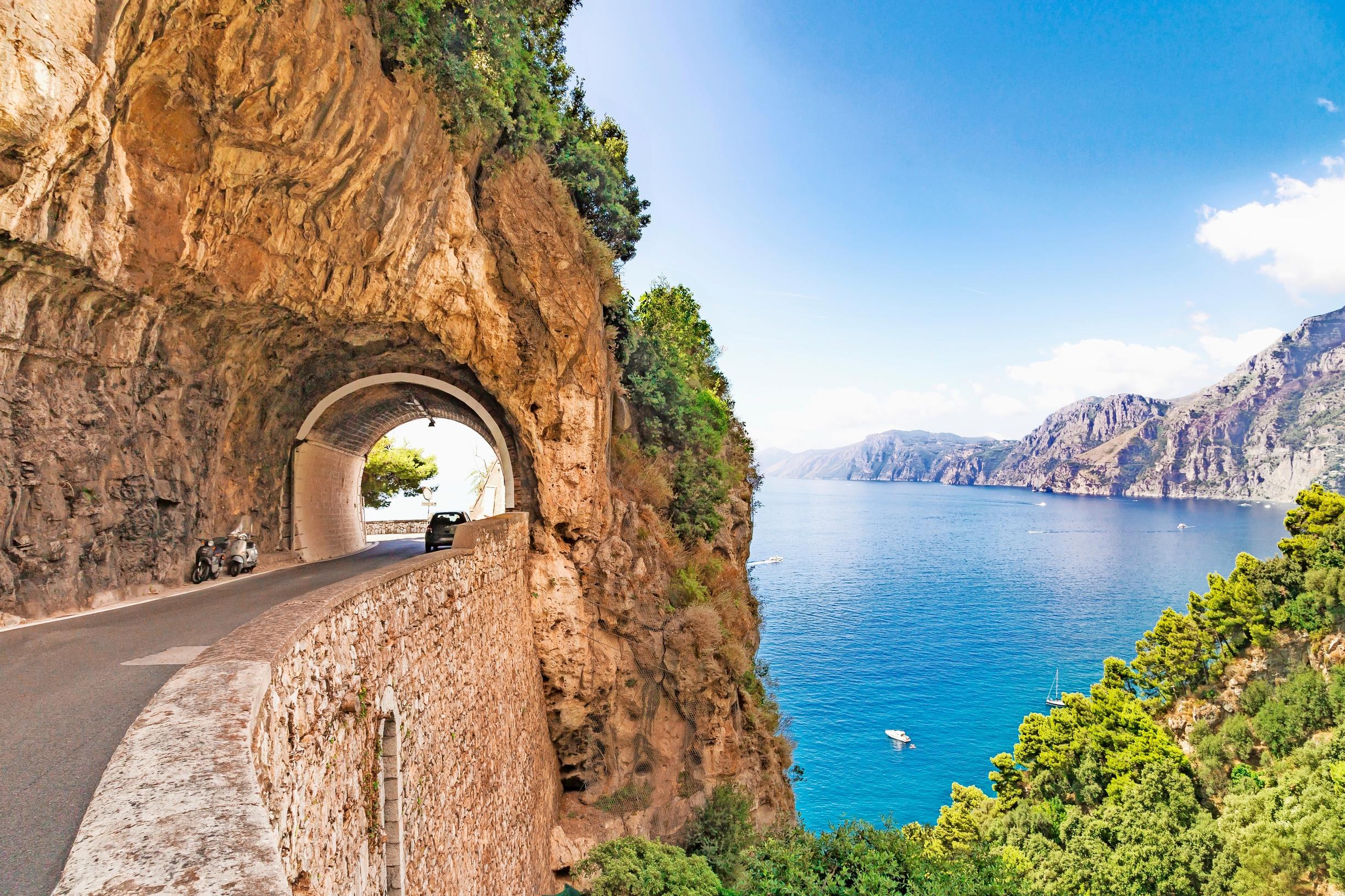 Yksi maailman kauneimmista ajoreiteistä on Italian Amalfin rannikon Nastro Azzurro – syheröisiä vuoristoteitä, upeita merinäkymiä ja viehättäviä kyliä
