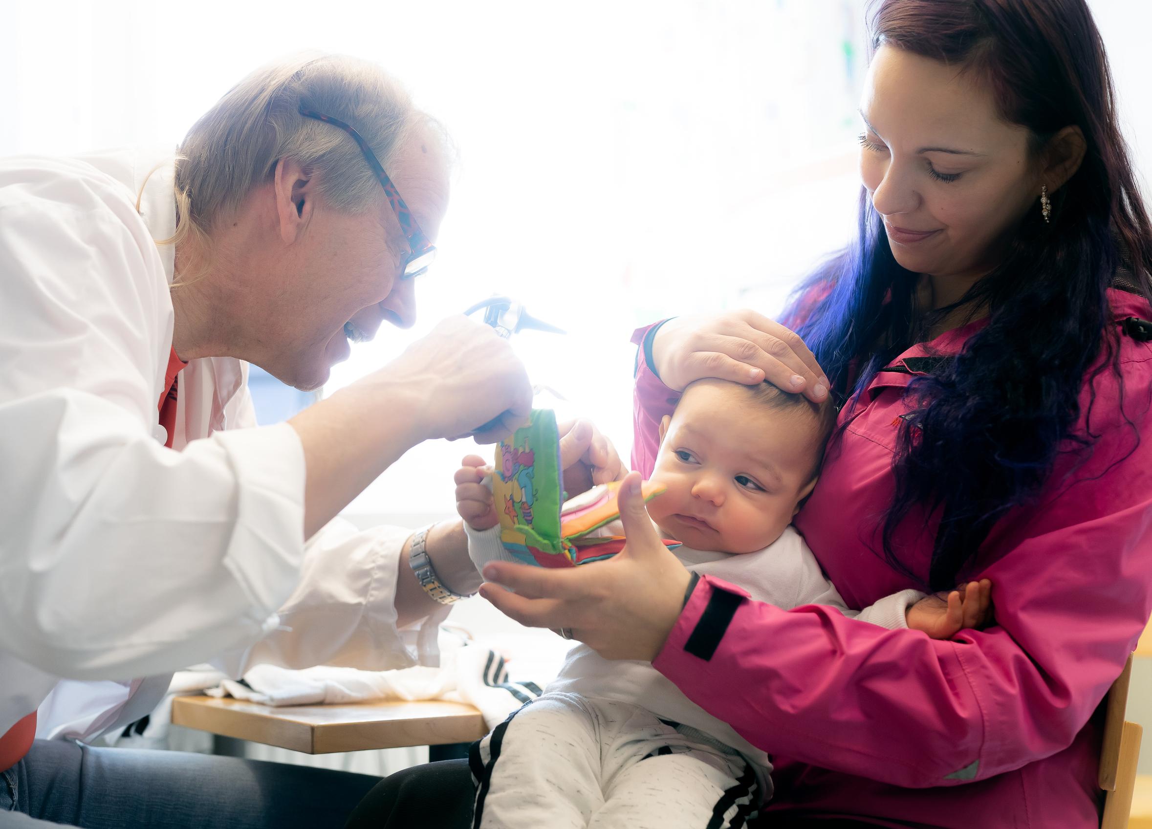 Lääkäri kuuntelee vesselin sydänäänet, kunhan Luca riisuu bodyn.