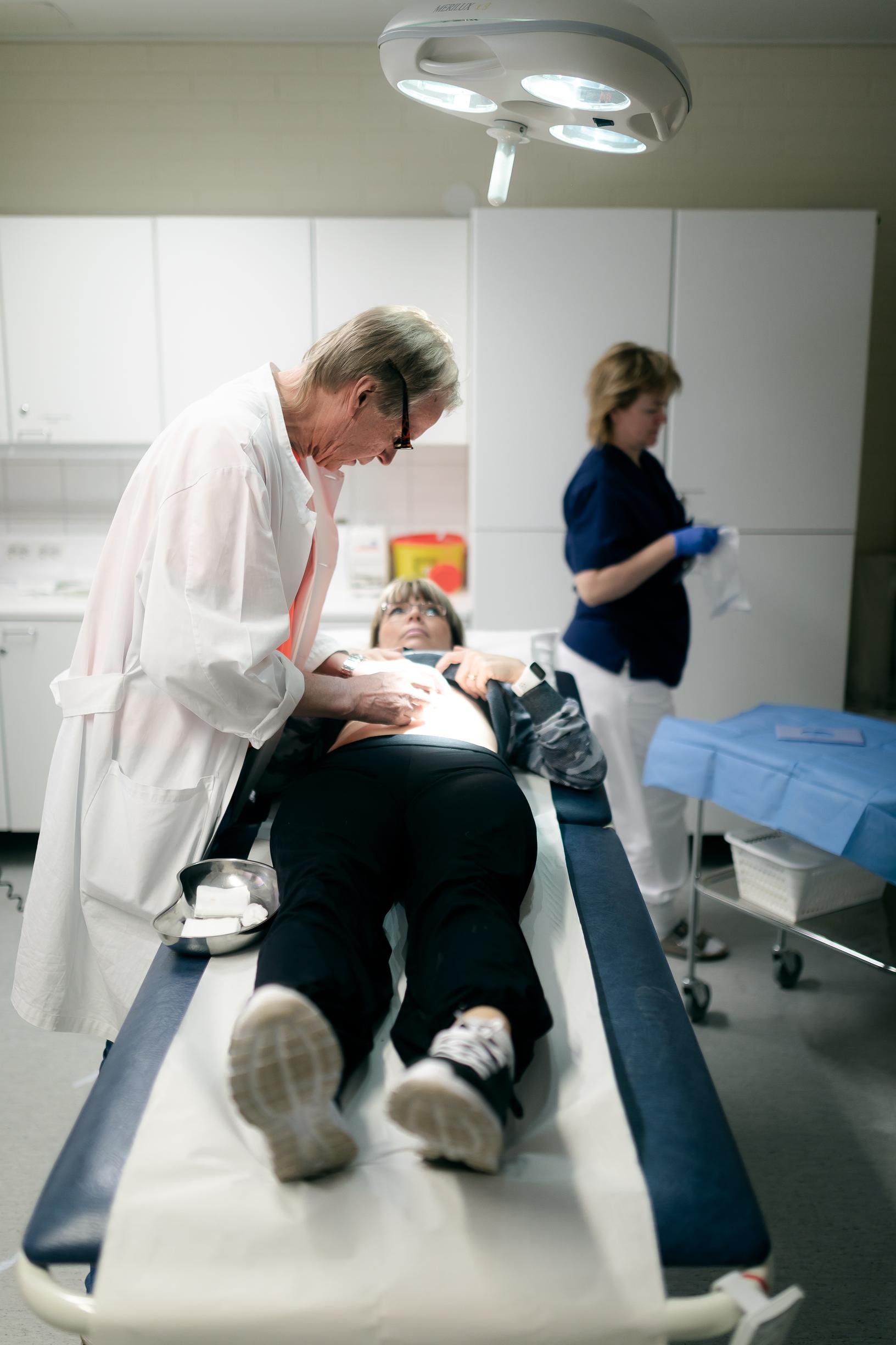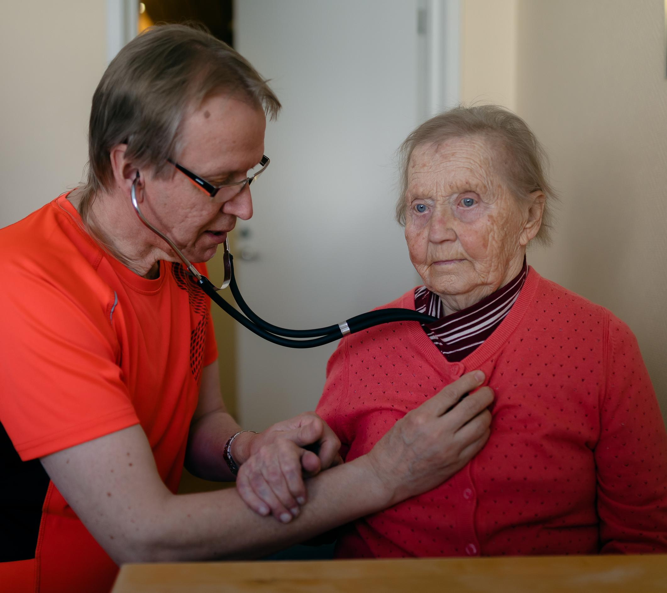 – Hengittelepäs vähän edestakaisin, niin kuunnellaan. Me ollaan jo siinä iässä, että pitää kuunnella aorttaläppä.