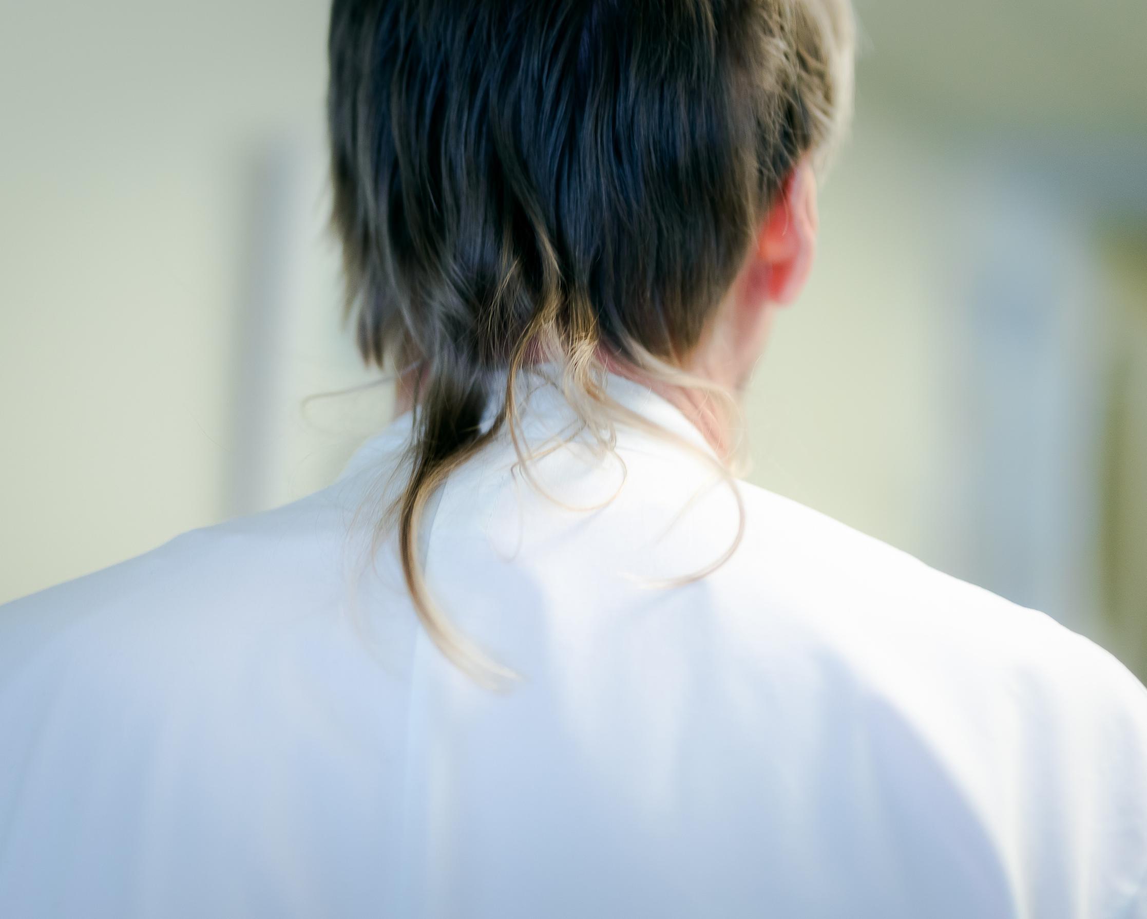 Kiminkisen niskakiehkura keikkuu, kun kiertelemme laitoksen labyrintissä. Otamme oikopolkuja toimenpidehuoneiden, röntgenin, neuvolan, sairaalan ja laboratorion välimaastossa.