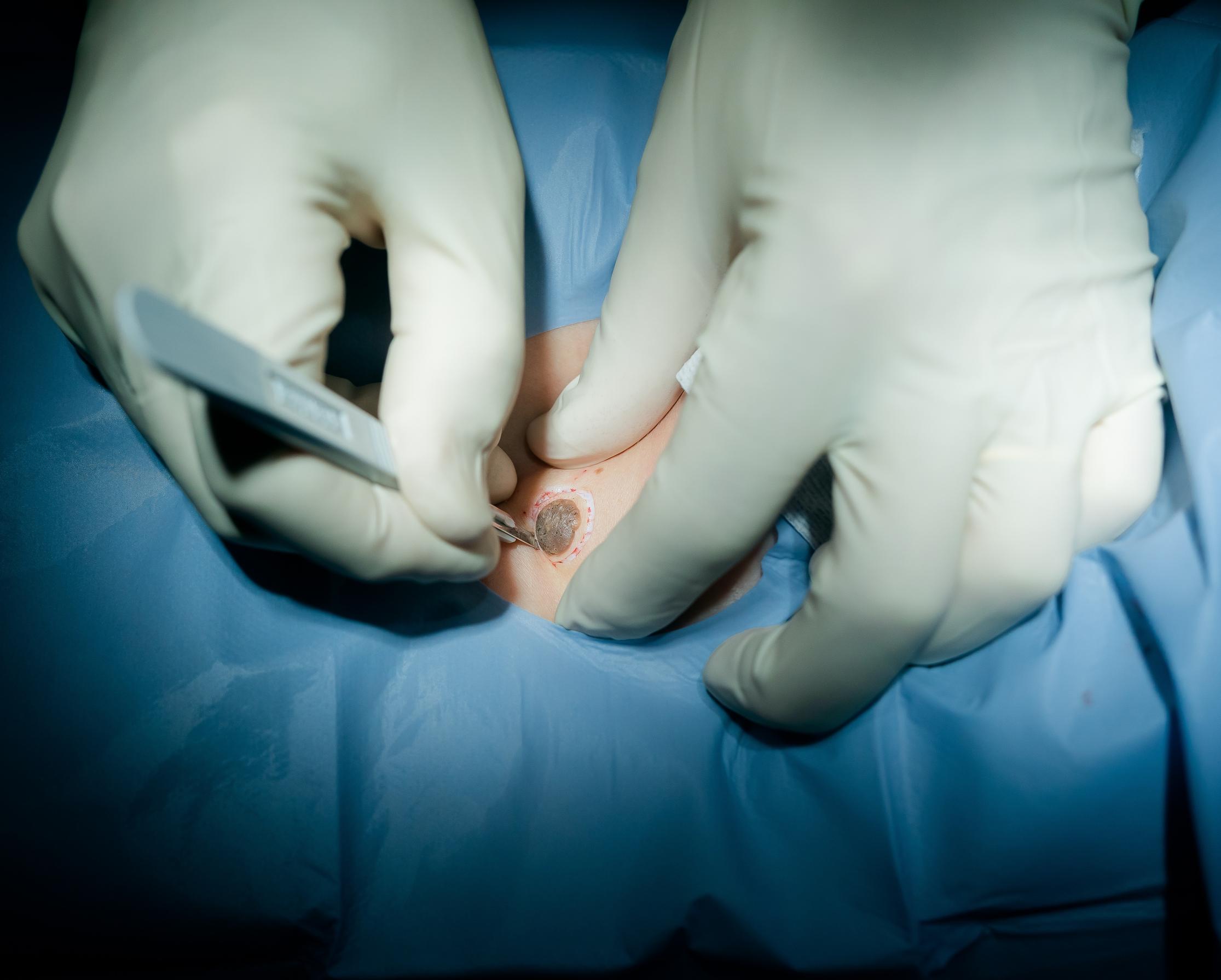Muutama puudutuspiikki ja viiltoja. Annen veri ei valu juuri lainkaan, sillä puudutteessa oleva adrenaliini vähentää vuotoa.