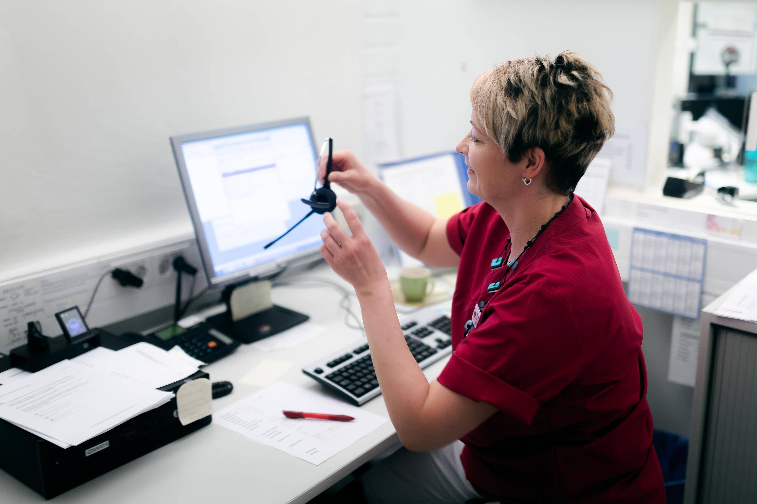 Taas soi puhelin sairaanhoitaja Jaana Koskisen pimeässä kopissa. Tietokoneen ruutu hehkuu. Koskinen antaa hoito-ohjeita ja torppaa turhat käynnit.