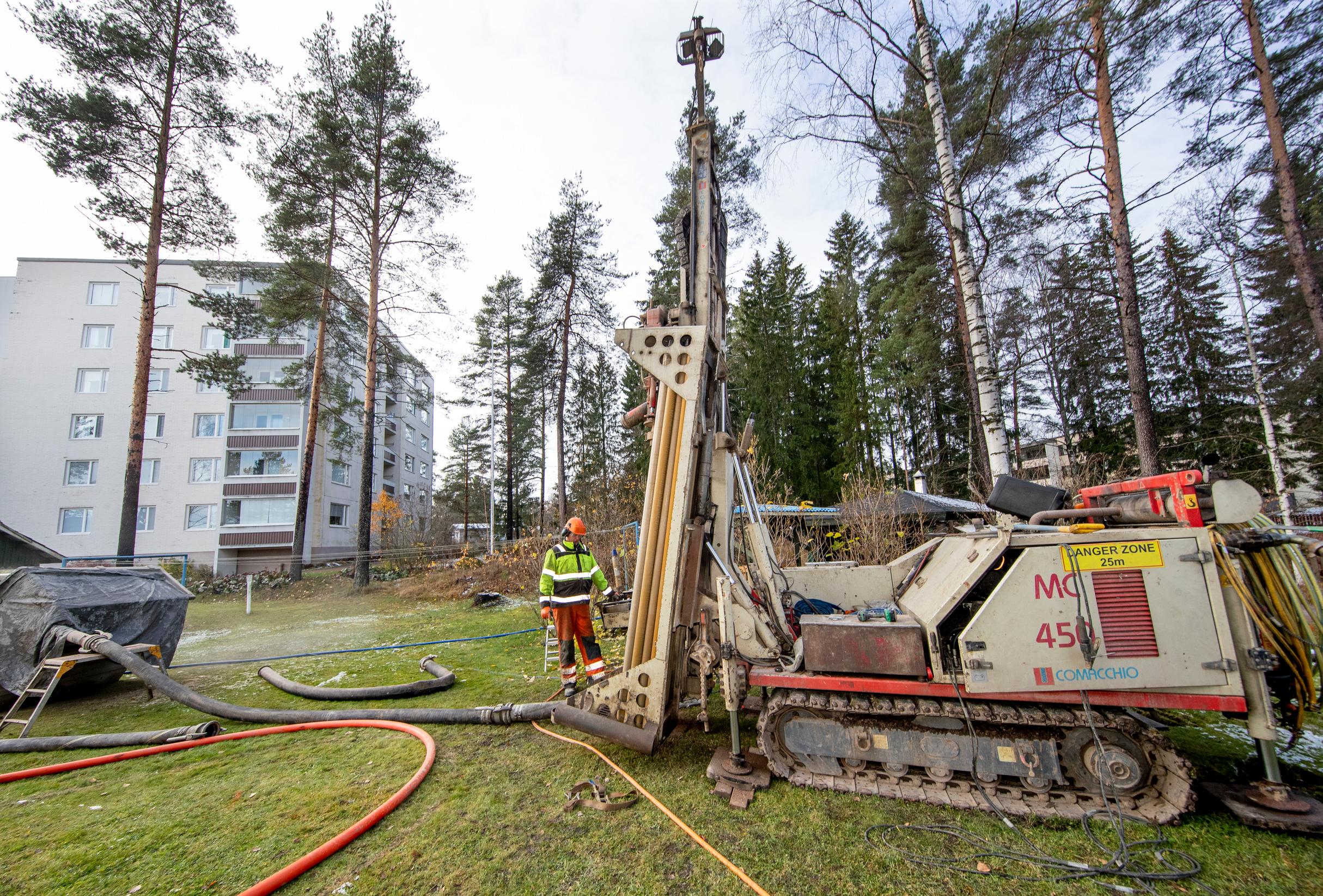Kerrostaloissa maalämpöön siirtymisen hinta nousee 200 000–400 000 euroon. Asuinneliötä kohti hinta voi kuitenkin olla jopa halvempi kuin omakotitalossa, Jussi Hirvonen muistuttaa.