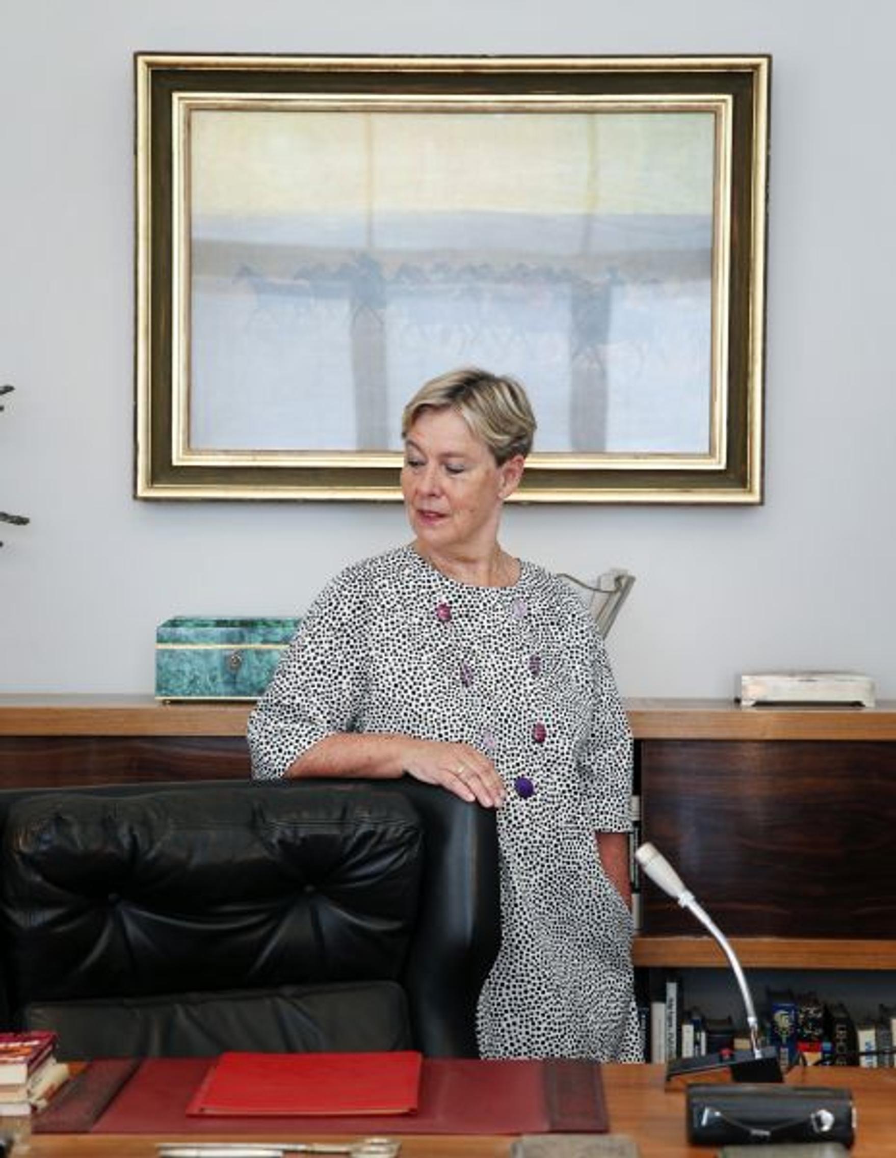 Urho Kekkosen työtuoli on tyhjä. Maarit Tyrkkö tutussa paikassa, lupauksensa presidentille täyttäneenä.