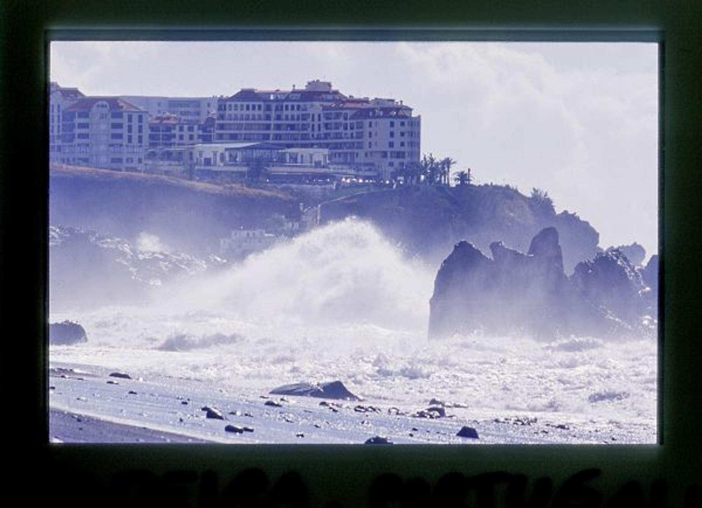 Hotelli seisoo rantakalliolla, joka uhmaa talonkorkuisia Atlantin aaltoja.