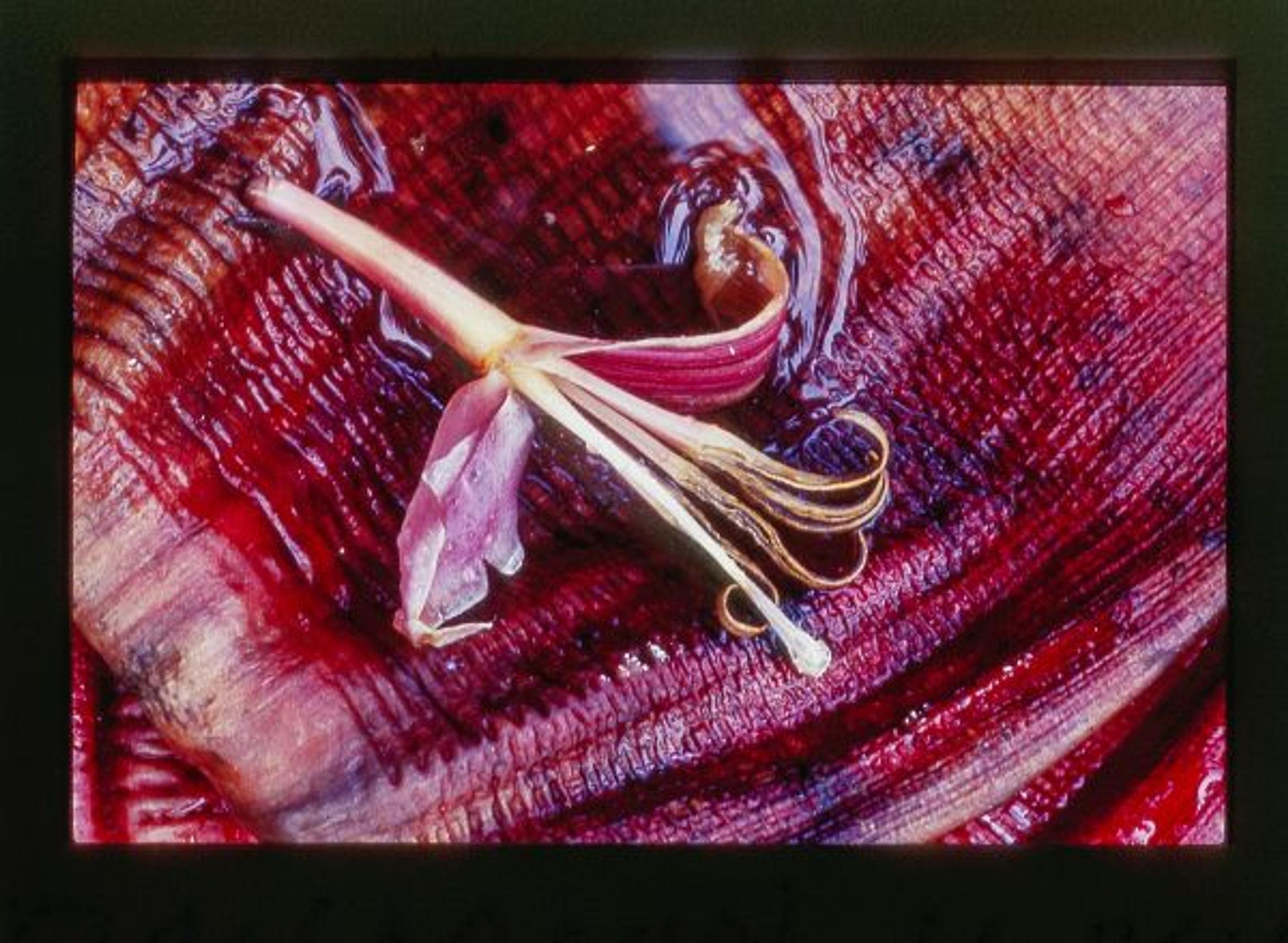 Banaani on Madeiran tärkeimpiä viljelykasveja. Kuvassa yksityiskohta banaanin kukasta sateen jälkeen.