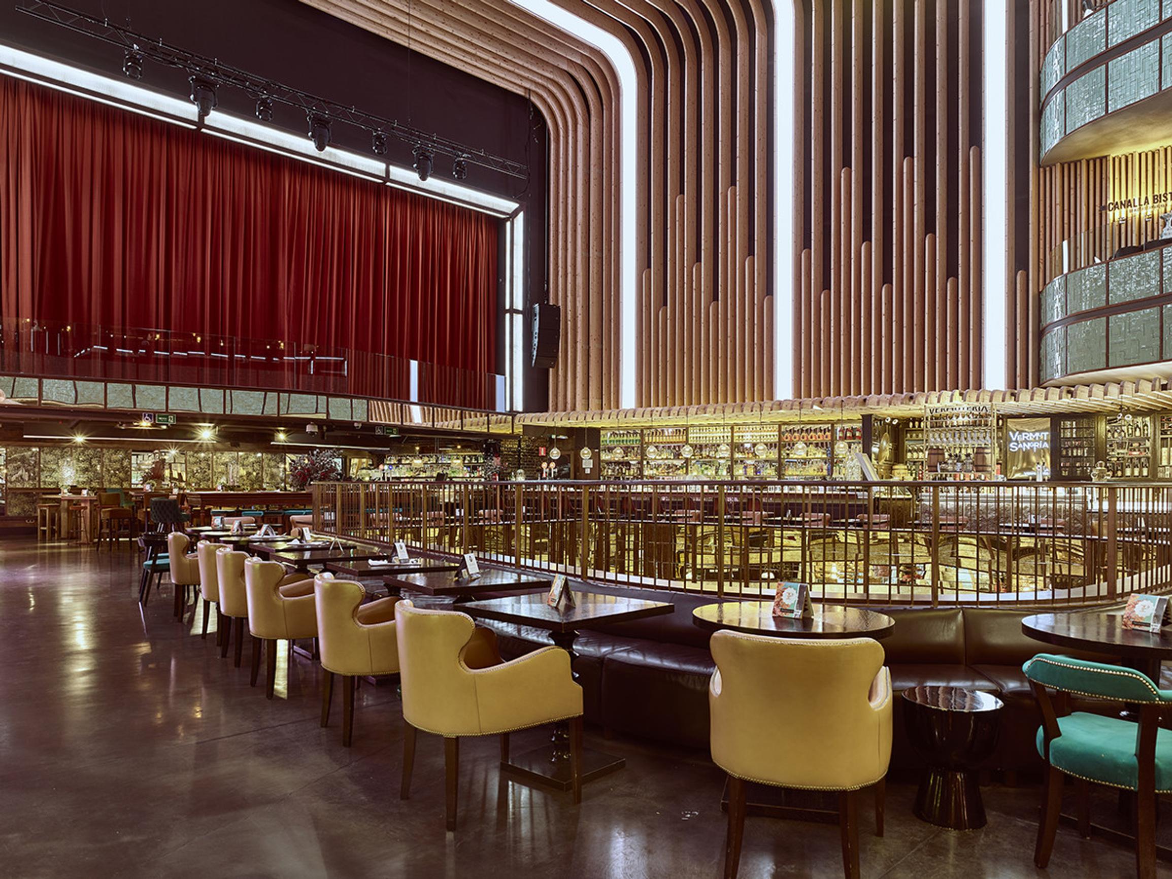 Entinen elokuvateatteri on muutettu 6 000 neliömetrin ruokakeitaaksi. Tarjolla on niin perinteisiä espanjalaisia tapaksia, kansainvälistä ruokaa kuin yllättävän maltillisesti hinnoiteltua fine diningiakin. Musiikista vastaavat dj:t, joita kuunnellessa voi siemailla cocktaileja loputtomalta vaikuttavalta listalta.