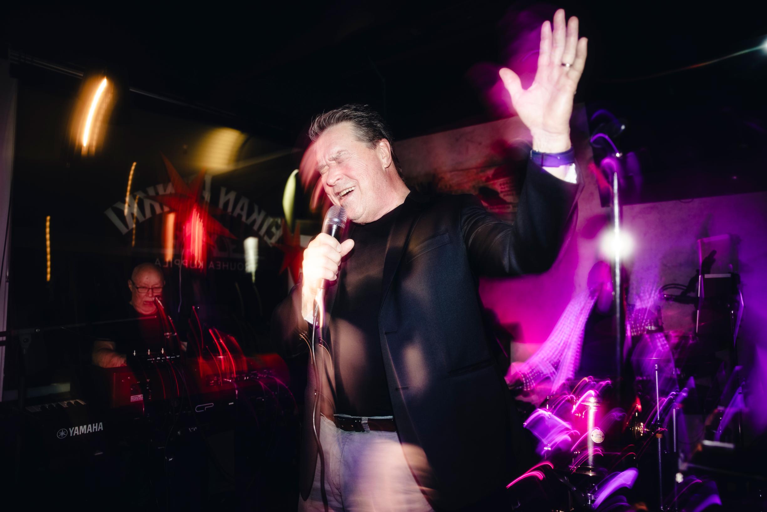 Lauantai-ilta Järvenpään Eikan Pankissa on vasta ottamassa muotoaan. Ravintolan perällä illan tähti, iskelmälaulaja Markku Aro, istuu pienessä takahuoneessa kaljatynnyrin päällä ja hörppii kahvia.