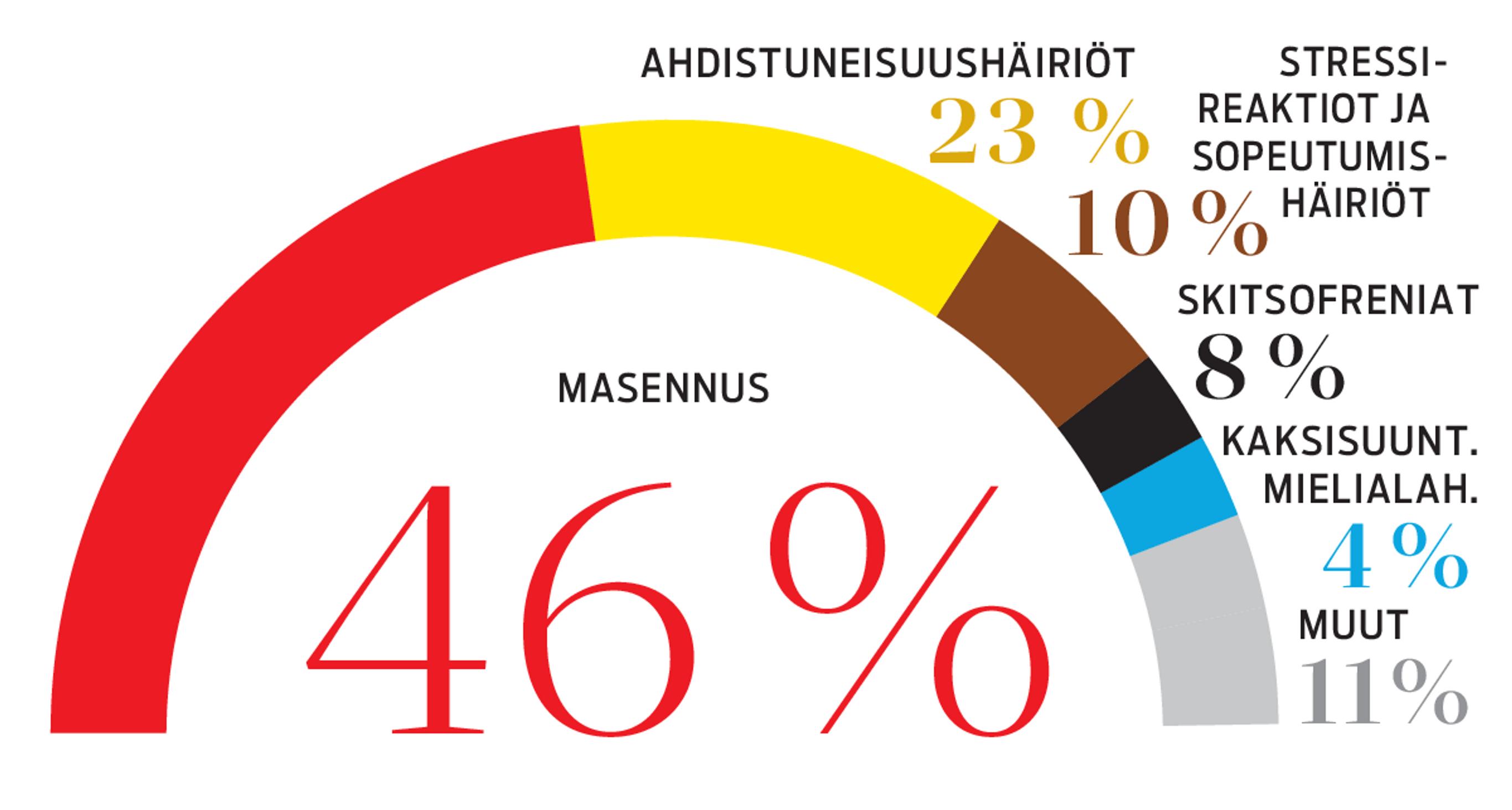 Pahimmassa vaiheessa 2000-luvulla masennus vei työkyvyttömyyseläkkeelle yli 4 000 suomalaista vuosittain. Vuosikymmenen lopulla toteutettiin kansallinen Masto 1 -hanke, jonka tavoitteena oli vähentää masennuksesta johtuvia työkyvyttömyyseläkkeitä. 2010-luvulla tilanne parani – kunnes viime vuosina on palattu jälleen lähes 2000-luvun lukuihin.