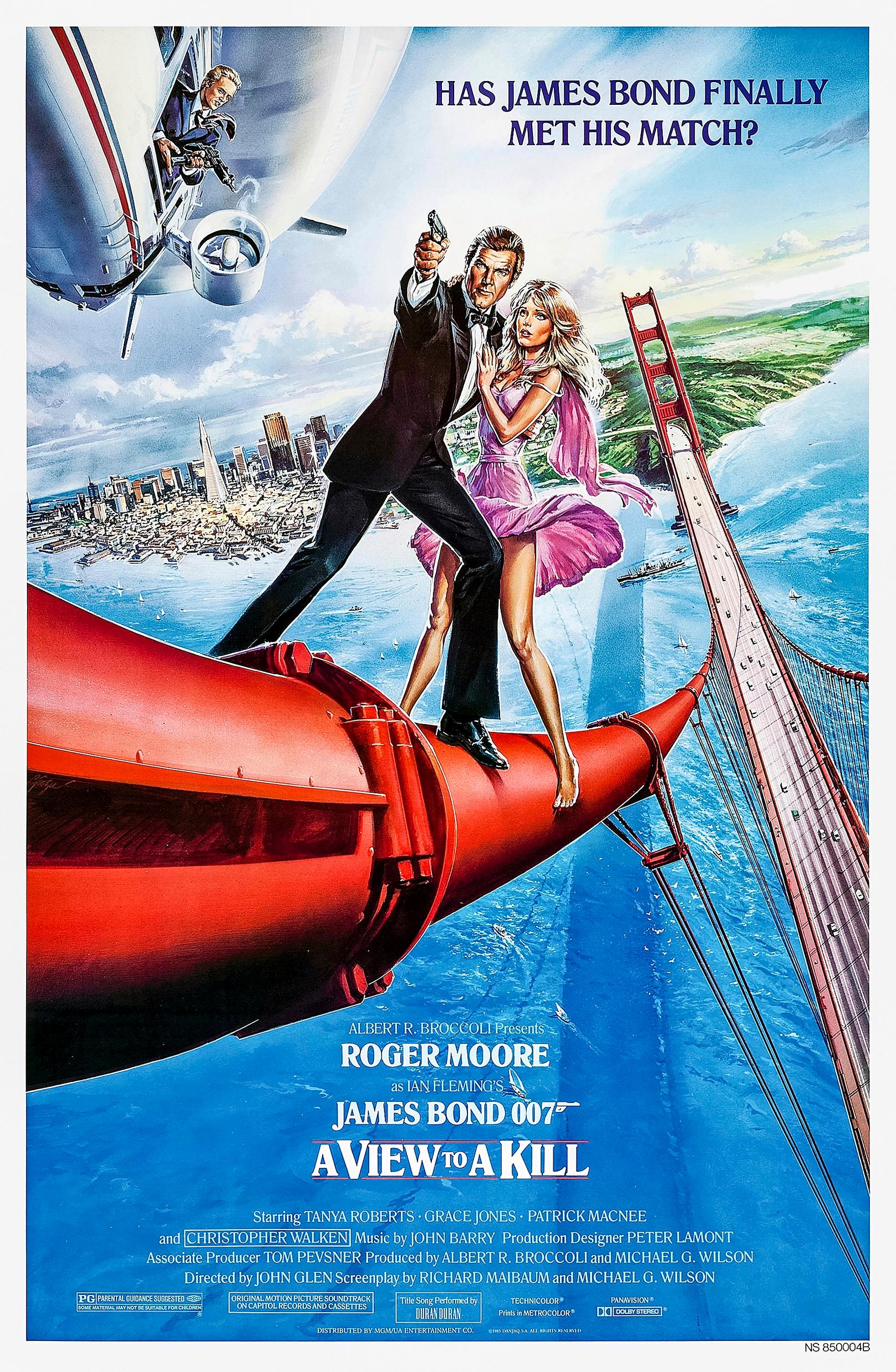 Myöhemmin tekijät innostuivat kuuluisista nähtävyyksistä jo koomisesti. Mooren viimeisessä Bond-elokuvassa 007 ja kuoleman katse (1985) agentti jahtaa samassa elokuvassa rikollisia sekä pitkin Pariisin Eiffel-tornia että ilmalaivalla San Franciscon Golden Gate -sillan yllä.