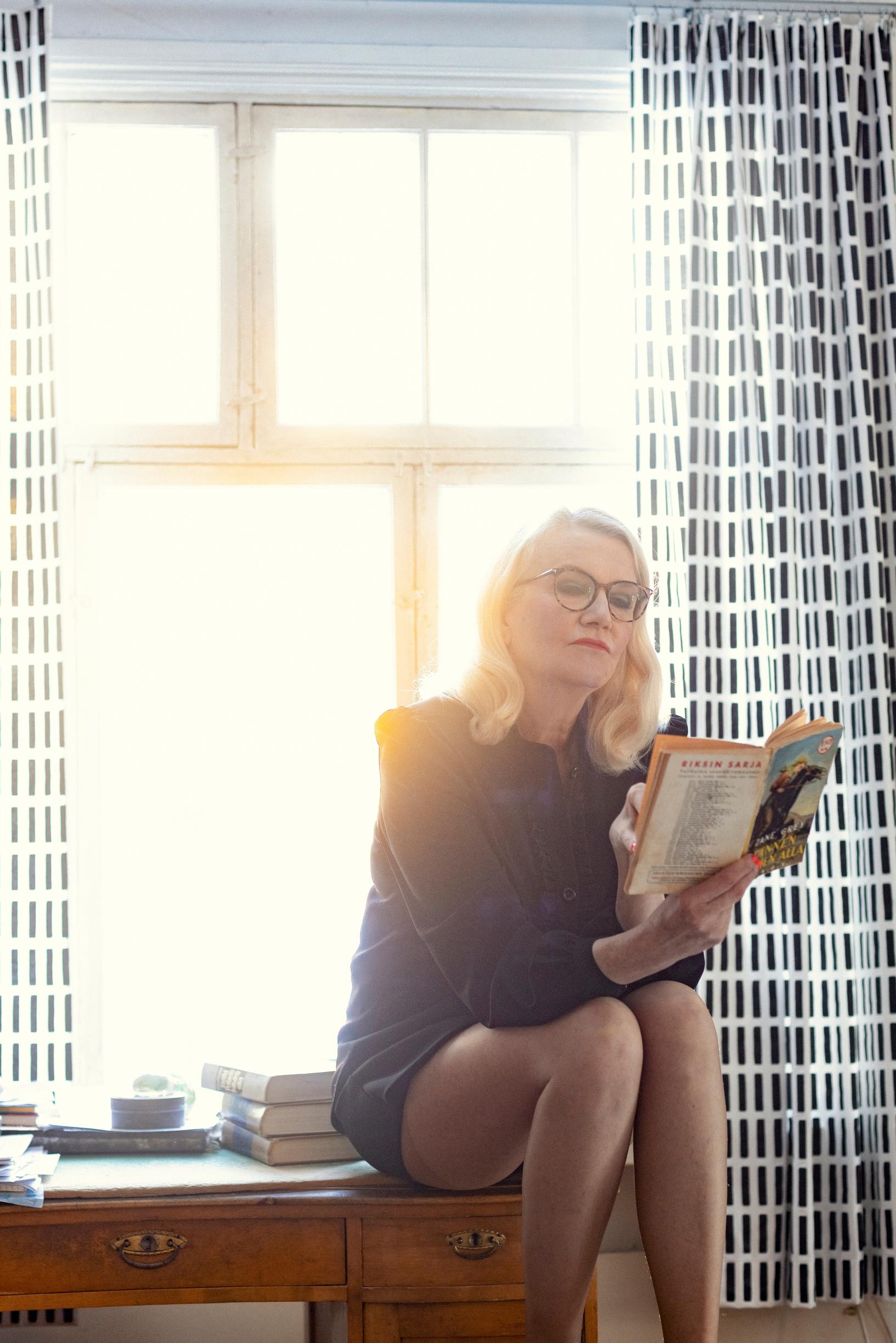 – Ei minulla ole pakkomiellettä olla hassu, mutta monesti draamassakin voi katsoa asiaa huumorin kautta. Päättelin tuolloin, että joidenkin miesohjaajien naiskuva oli sovinistinen. Mietin, että mikä hiton tosikko tuo on, mikä keskinkertaisuus! Nyt maailma on onneksi muuttunut, joten voi olla, että enää niistä samoista asioista naisnäyttelijä ei joutuisi vastahankaan. Naiskuva on laajentunut. En ajattele, että tänä päivänä miehet kauhistelevat, miten villi olen. Höpö höpö, hän sanoo ja hymyilee.