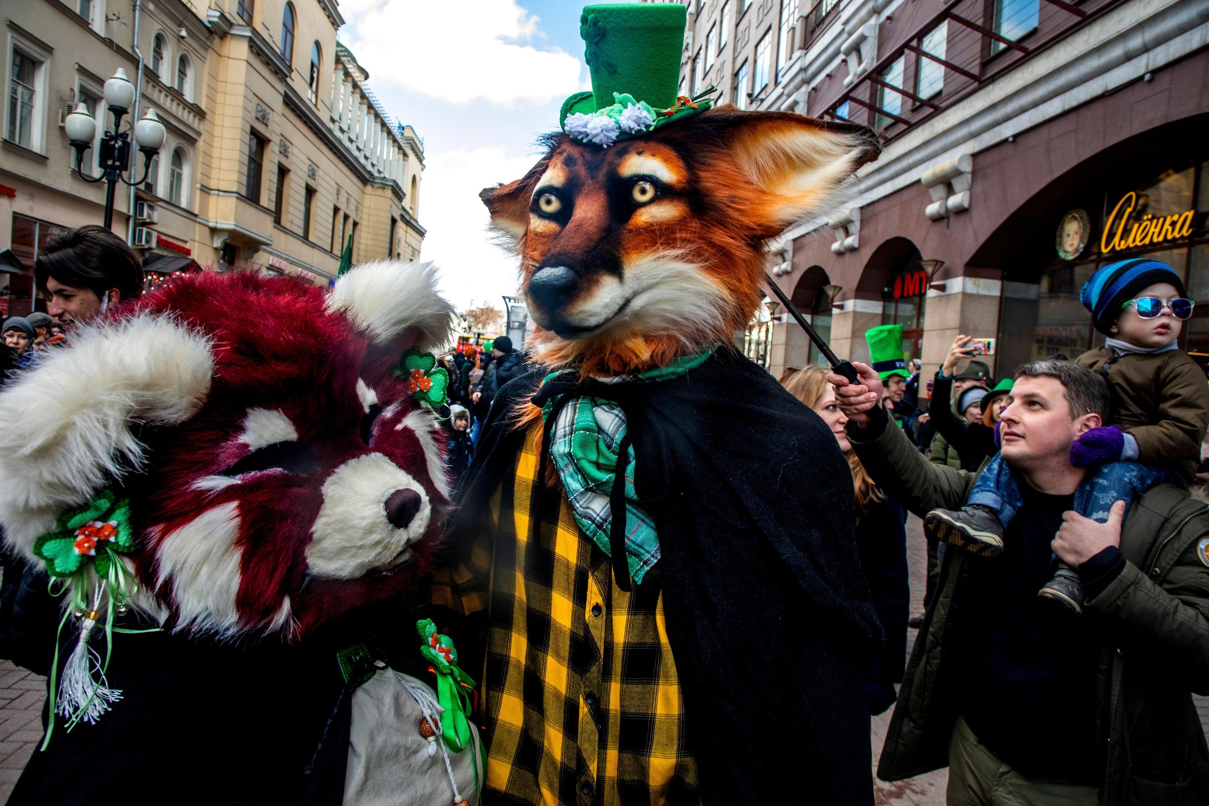 Artikkelin aloituskuvassa eläinhahmoja turriharrastajien tapahtumassa Moskovassa 20.3.2021.