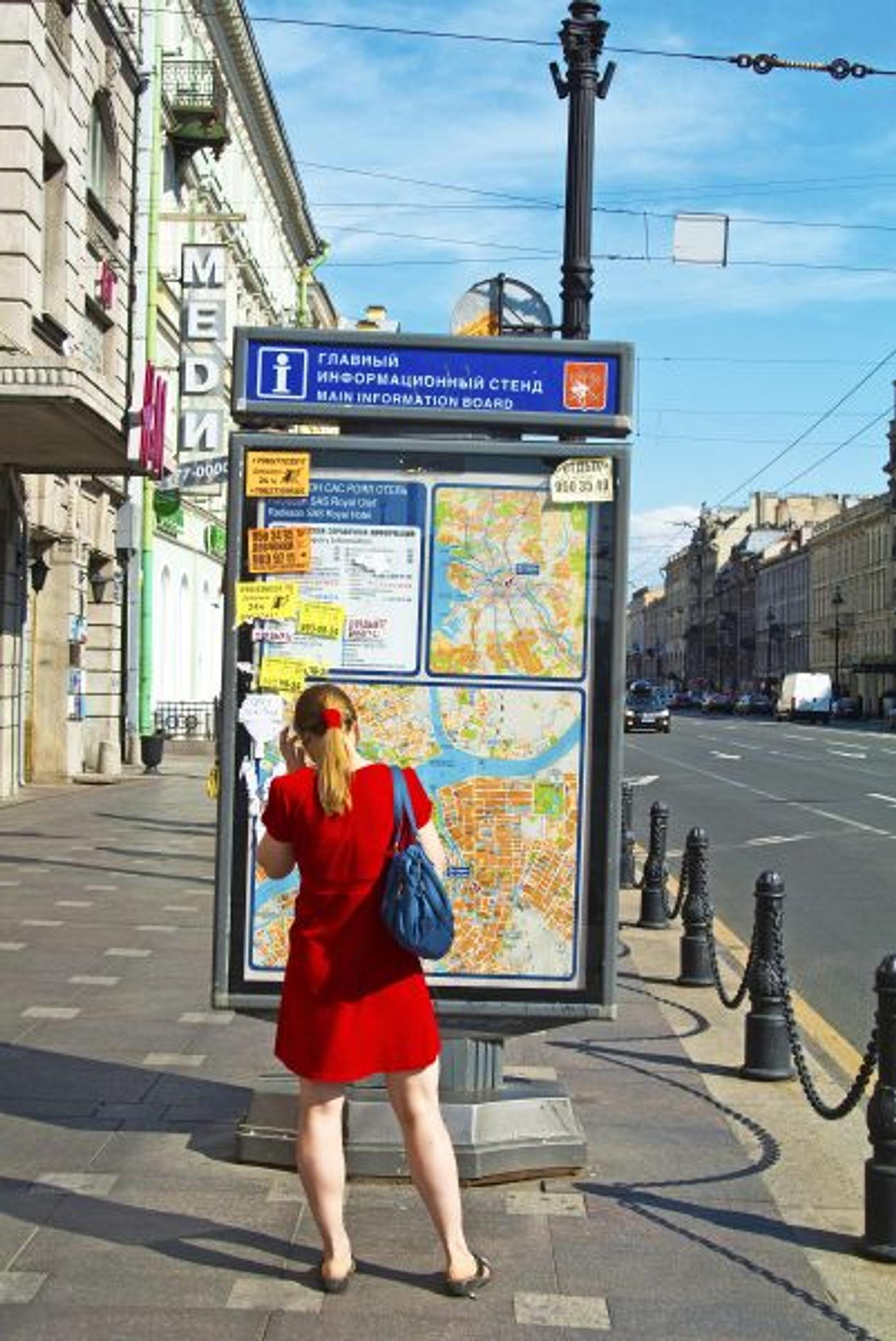 Kyrillisten aakkosten opettelu auttaa liikkumista Pietarissa.