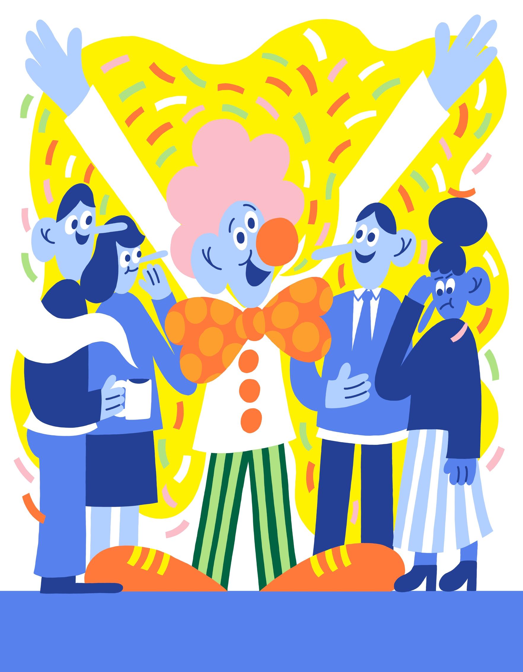 Kun 56-vuotias Ilkka vitsailee voimainsa tunnossa neukkaripöydän toisessa päässä ennen palaverin alkua, 35-vuotias Linda tekee ilmoituksen organisaation nimettömään ilmiantokanavaan. Palaverissa Linda tuijottaa lasittunein silmin ikkunasta ulos, kun Ilkka kertoo takavuosien pikkutuhmia juttuja viljelleestä, jo eläköityneestä kollegastaan. Jos aikaisemmin työyhteisössä on koettu kollektiivista painetta nauraa sellaisillekin jutuille, jotka eivät naurata, niin ei koeta enää.
