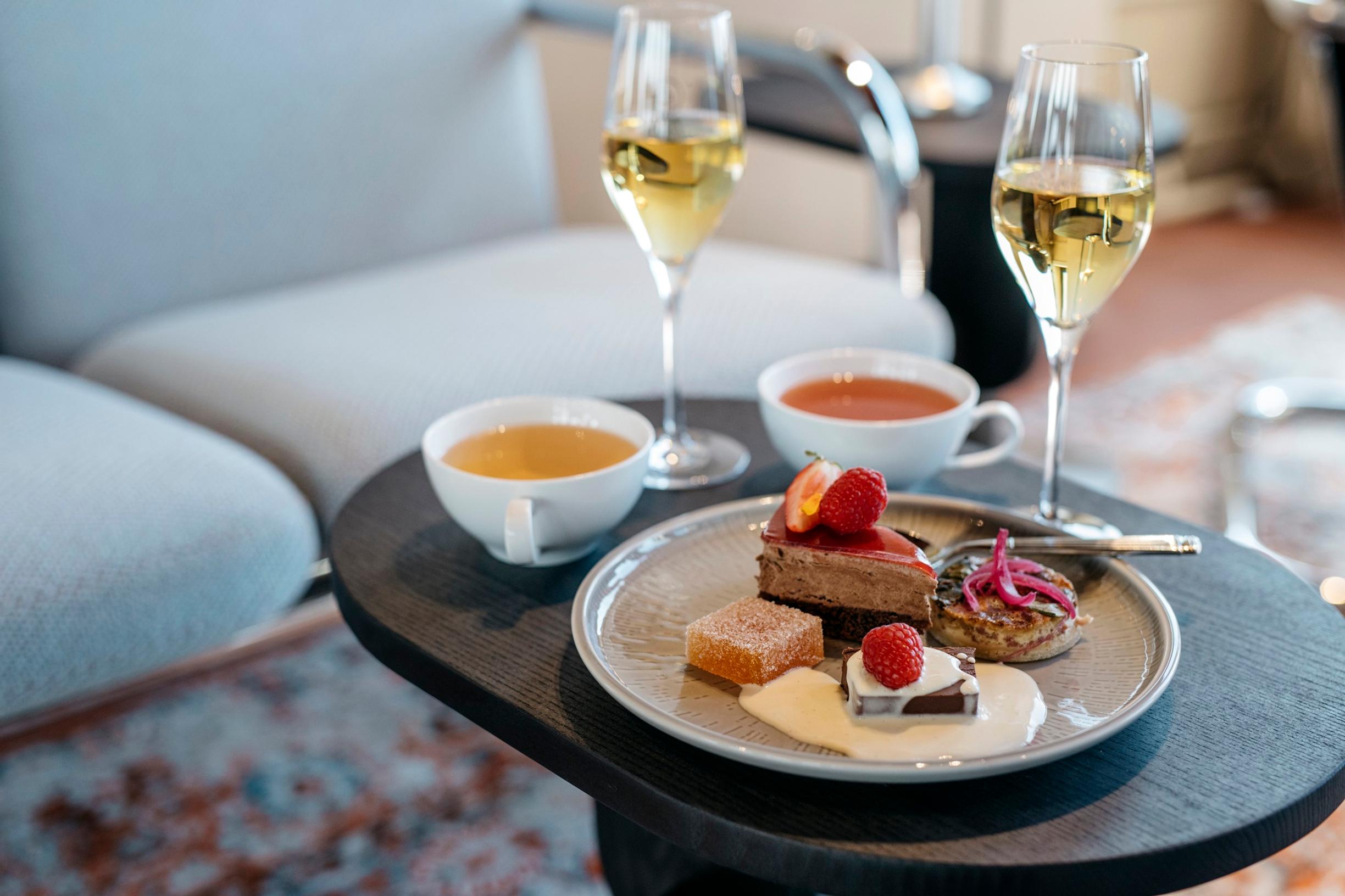 Tungosta helpottaa hieman se, että toiseksi ylimmän kerroksen kokoustila on nyt myös muutettu baariksi, jonne voi tehdä pöytävarauksen all day tealle. Se on Tornin versio afternoon teasta. Kyseessä ei kuitenkaan ole klassinen monikerroksiselta tarjottimelta tarjottava kattaus, vaan asiakas saa valita suolaisten ja makeiden syötävien listalta pikkuannoksia, jotka tuodaa pöytiin pikkulautasilla.
