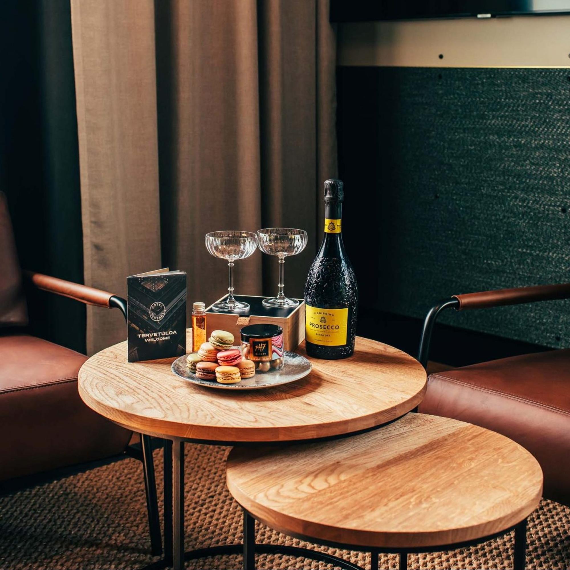 Hotel Mestari, Fredrikinkatu 51-53. 2 hh aamiaisineen alkaen noin 200 euroa (marraskuun 2022 loppuun asti avajaistarjouksena alkaen noin 160 euroa).