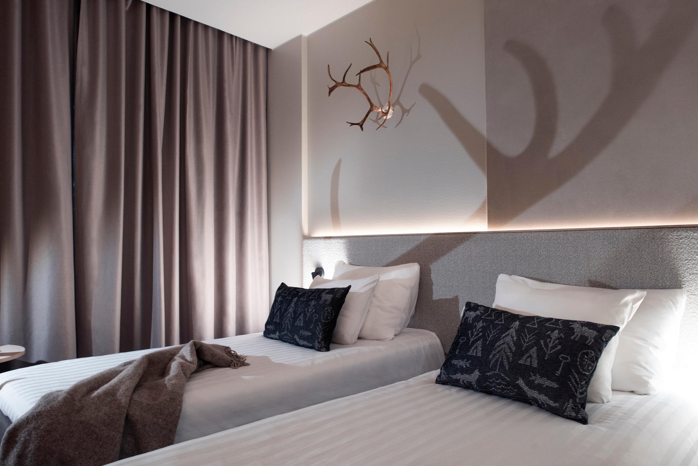Sisustus muistuttaa Laplandin aiempia kaupunkihotelleja, jotka ovat lämminhenkisen tyylikkäitä ja moderneja majapaikkoja pienellä ripauksella Lappia. Sisällä huoneessa siitä muistuttavat vain poronsarvet sängyn yllä ja televisiosta soiva moderni joikaus. Muuten voisin olla lähes missä tahansa uudessa ketjuhotellissa: on tumma puulattia, iso sänky ja vaaleanharmaat värisävyt.