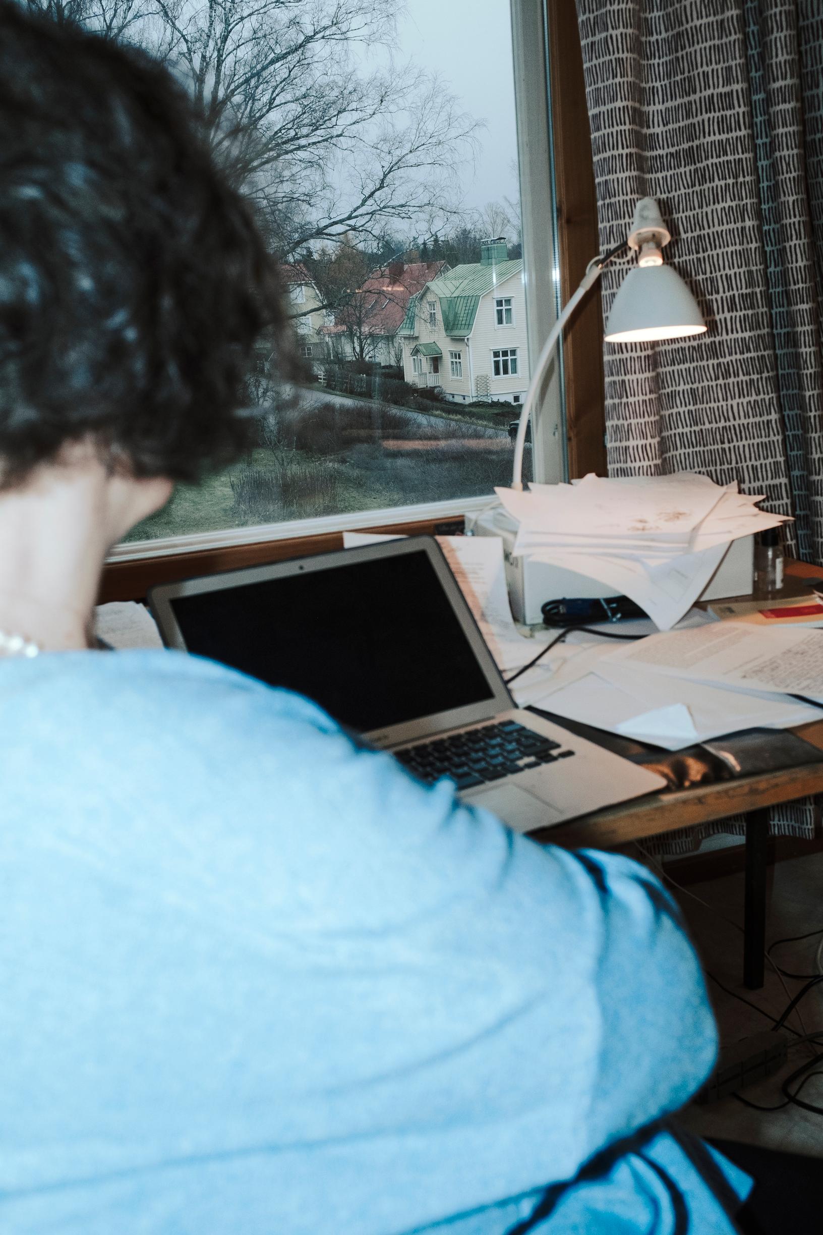 Fagerholm myös kirjoittaa, paljon, joka päivä, uudestaan, uudestaan, uudestaan. Hänen kirjojensa maailmat syntyvät kirjoittamalla. On kirjoitettava auki kokonainen maailma, jossa on dimensiota ja oma logiikka.