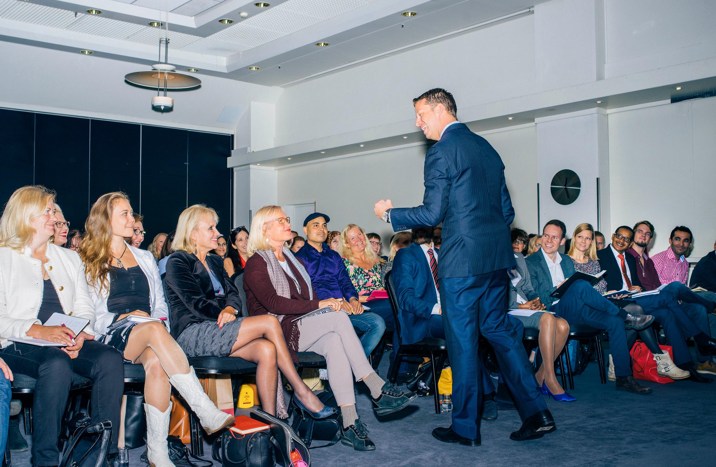 Hän on venäläis-ruotsalainen Sergey Kazachenko, entinen pankkiiri ja nykyinen ammattipuhuja, mutta emme me täällä hänen takiaan ole. Me olemme tulleet katsomaan päivän päätteeksi esiintyvää puhujaa nimeltä JT Foxx, emmekä ihan ilman syytä.