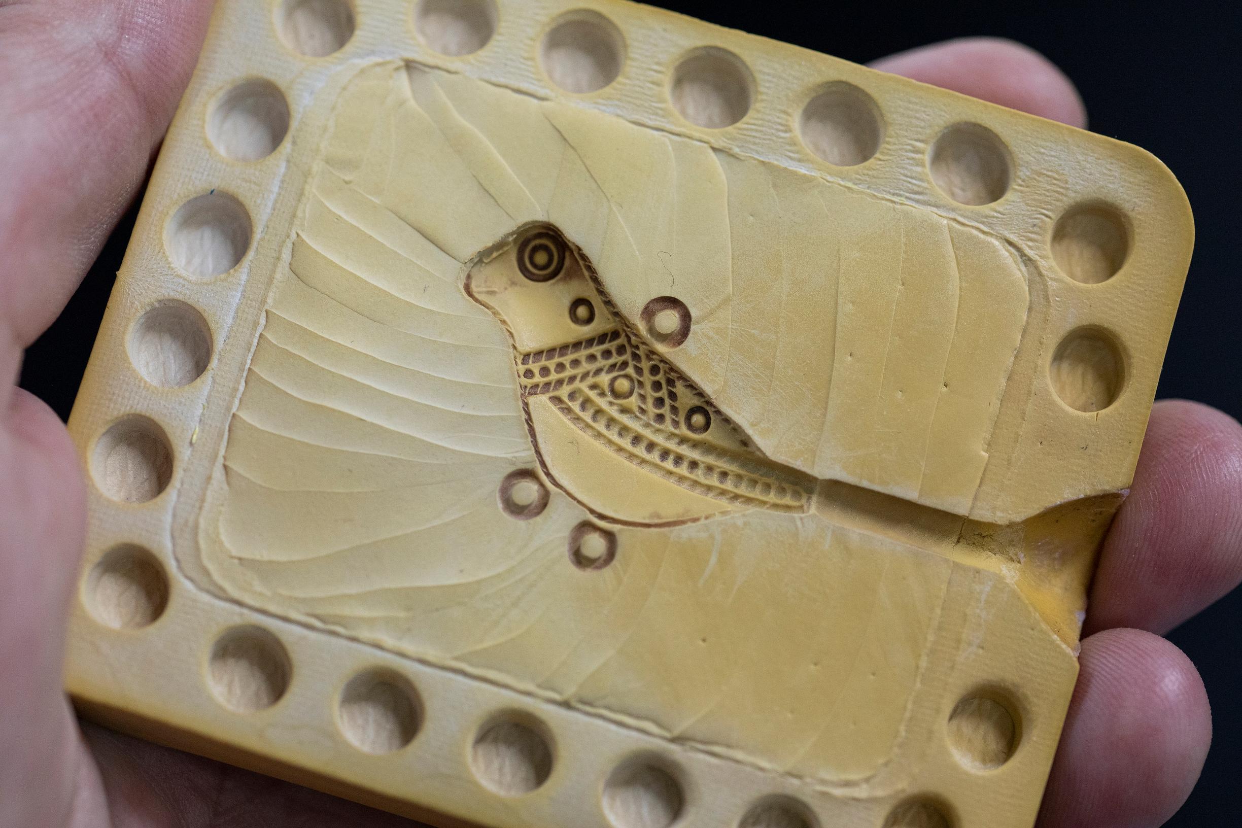 Osa vaha-aihioista tehdään käsin. Korun mallikappaleen perusteella tehdään kumimuotti, jolla valmistetaan korusta vahamalleja valua varten.