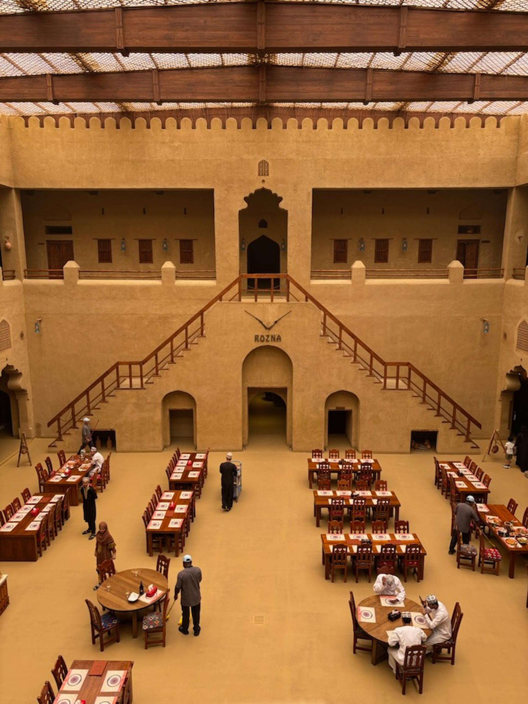 Moni kävijä kuvaa paikan, jossa on perinteisiä kaariholveja ja koristeita. Hinnatkaan eivät päätä huimaa: 7-10 eurolla syö jo hyvän annoksen, valitsi sitten lihaa, kalaa tai vaikka kasvisruuan. Täällä kannattaa syödä pidemmän kaavan mukaan. Koska Rozna sijaitsee lentokentän lähistöllä, siellä voi pistäytyä taksilla herkuttelemassa, vaikka pysähtyisi matkallaan Muscatin kentällä vain muutaman tunnin verran.