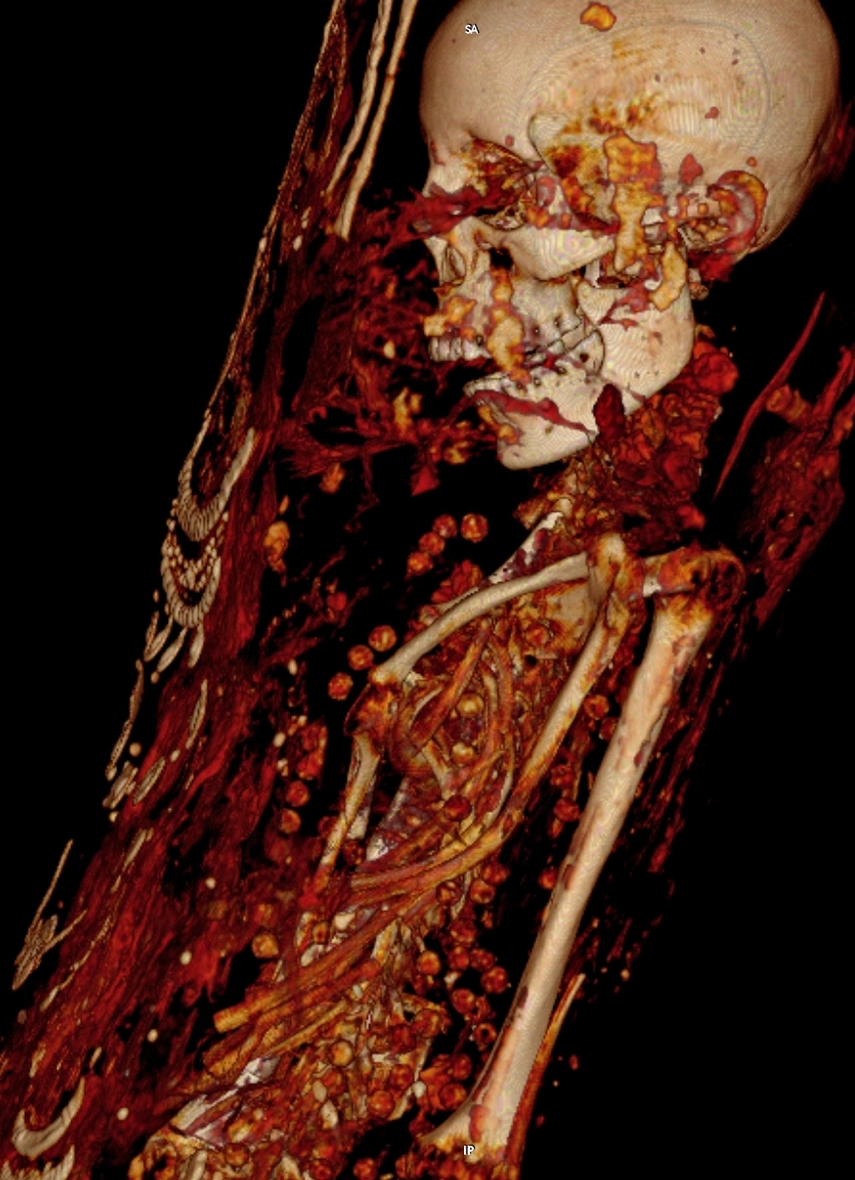 Tietokonekuvaus paljastaa, millaisessa kunnossa muumiot olivat eläessään. Naisella ja tytöllä on useita kaulakoruja ja tytöllä hiusneula. Muumiot ajoitettiin roomalaiselle kaudelle 30 eaa.–395 jaa.