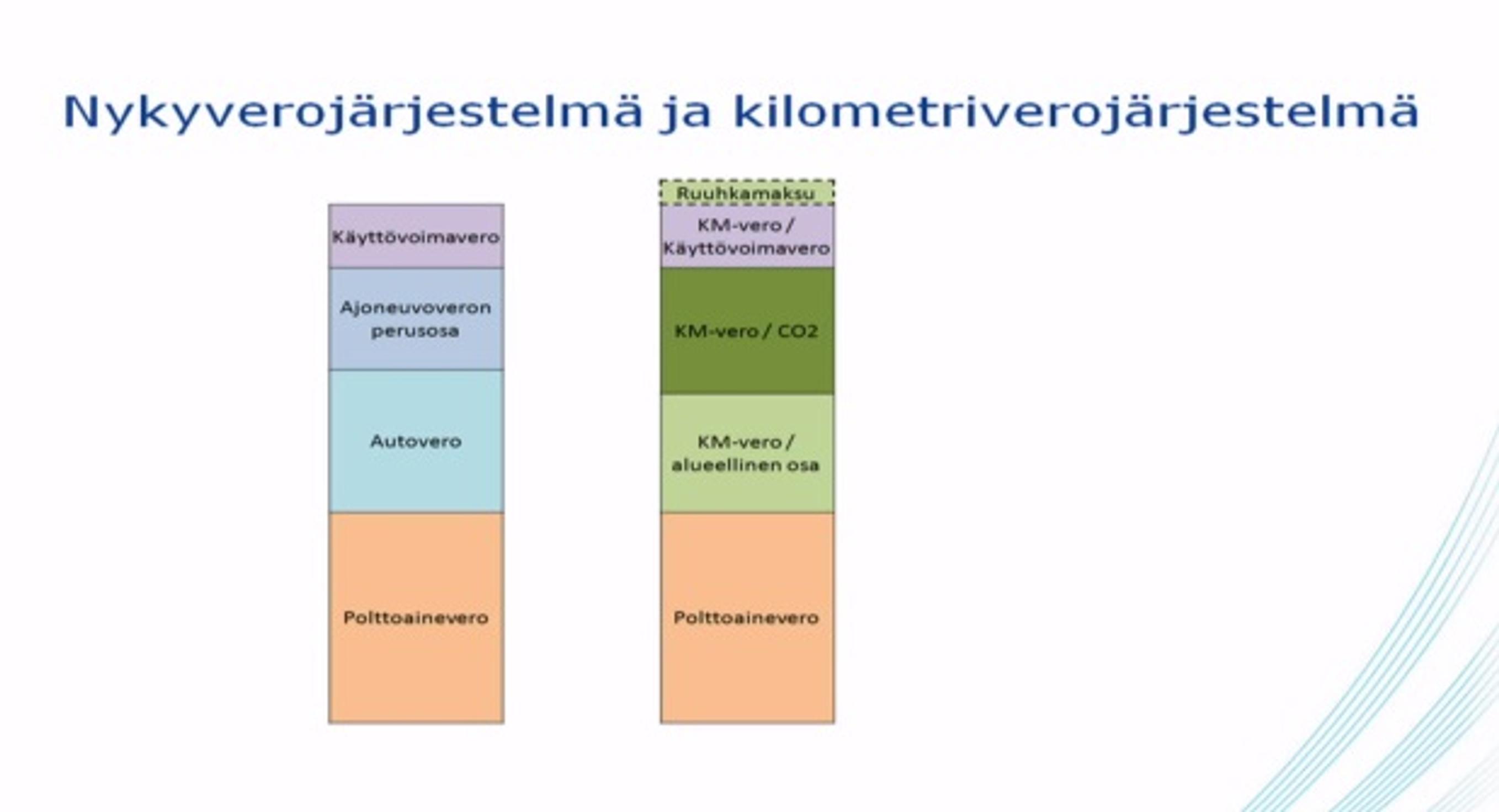 "Emme ota kantaa siihen, koska kilometriverojärjestelmä tulisi ottaa käyttöön, koska käyttöönotto on poliittinen päätös", toteaa Ollila. Asia muuttuu todellisuudeksi noin 2022-2025, arvioi Ollila.
