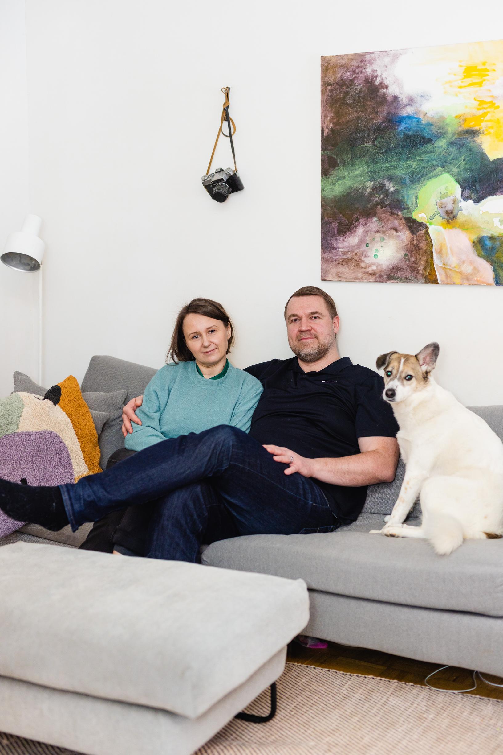 Millaista olisi Vilokin ja Aino Rekolan, 43, perheen elämä hiilineutraalissa Suomessa? Sitä selvittämässä on kanssani kestävää arkea tutkiva kulutustutkija Senja Laakso. Perheen kaksi lasta ovat häipyneet menoihinsa. Rescue-koira Lotta käpertyy Laakson viereen sohvalle rapsuteltavaksi.