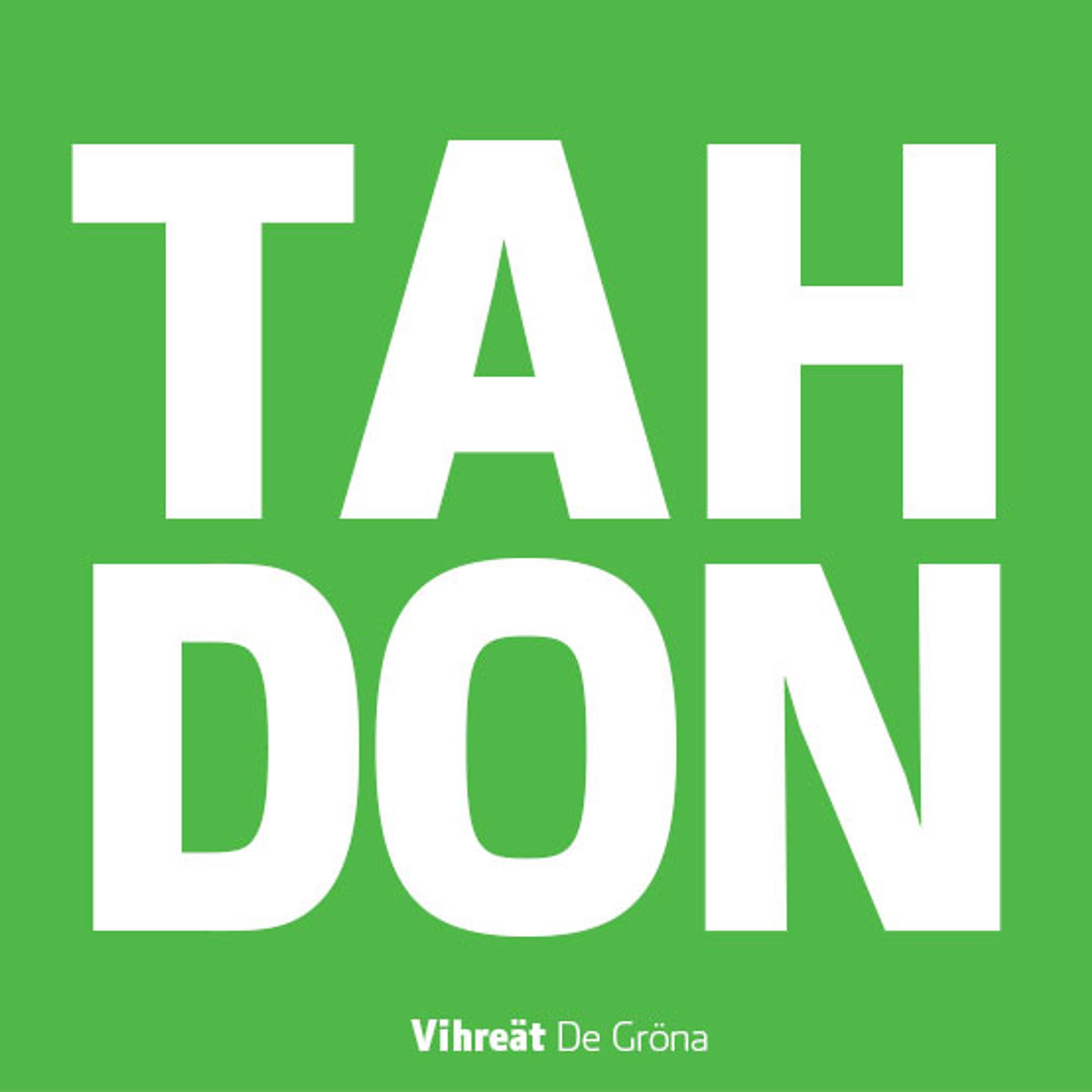 Viikko sitten maanantaina Vihreiden viestintäsuunnittelija Ville-Veikko Mastomäki suunnitteli Tahdon-logon vihreiden fontilla ja värillä.