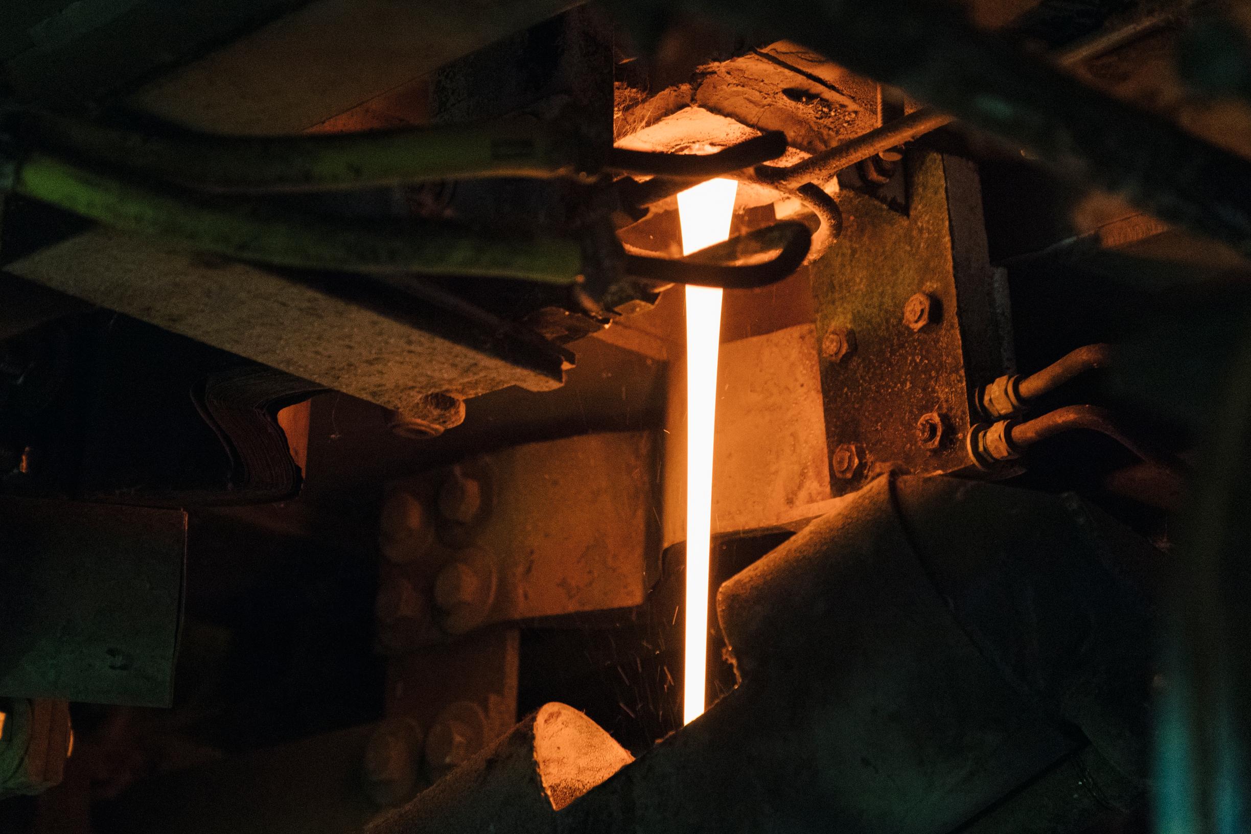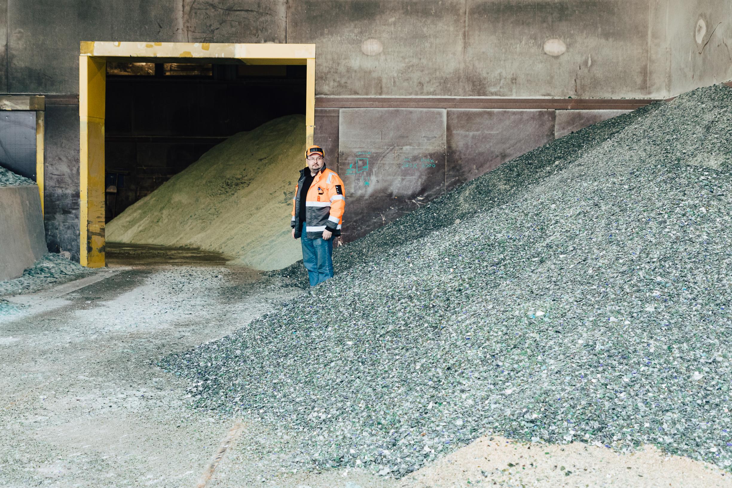 Kun kierrätyslasia sulatetaan, punaisena hehkuvan uunin lämpötila on kuumimmillaan 1 300 astetta.