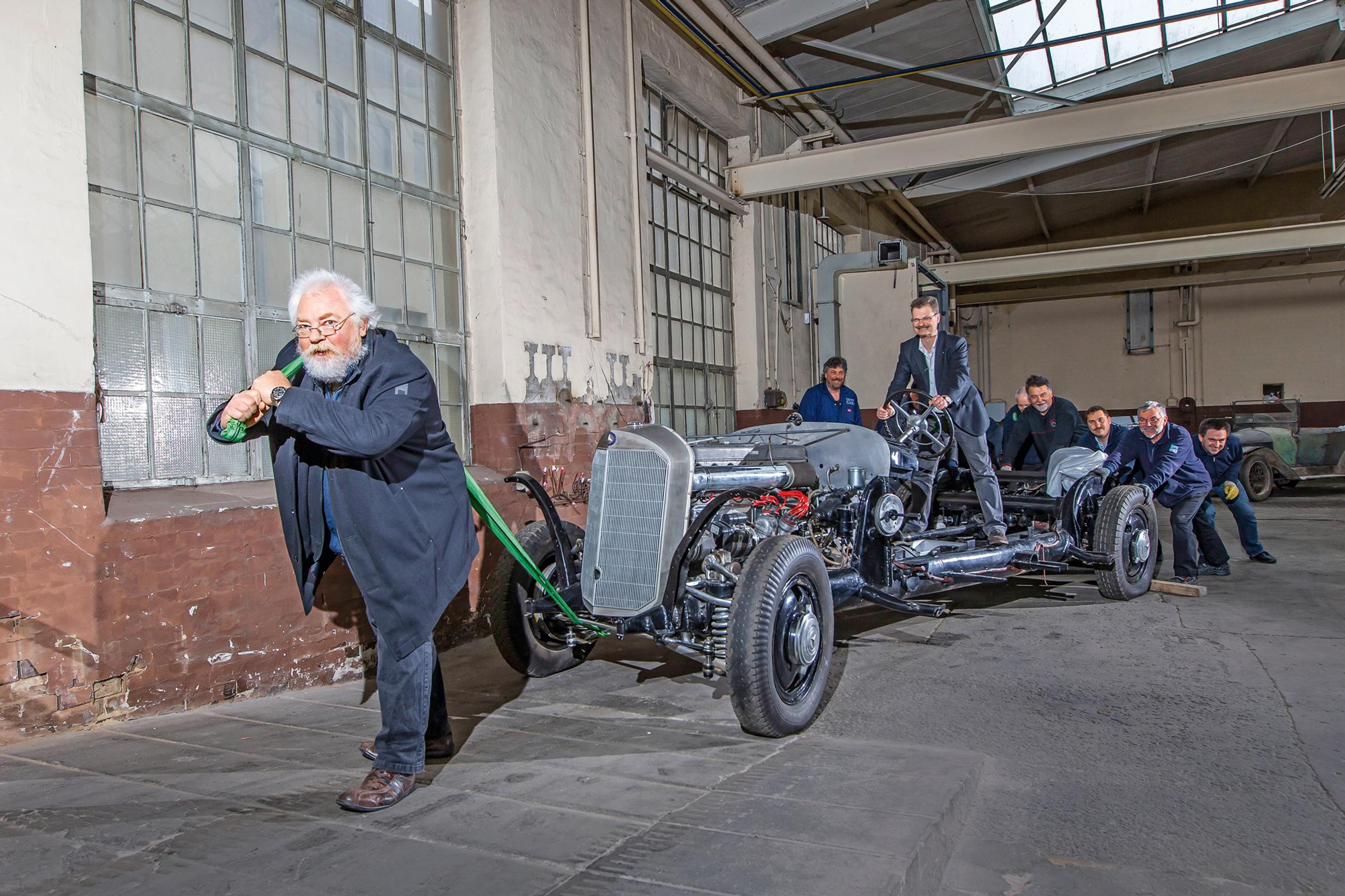 Jos renkaissa vain riittää ilmaa, voi noita autojen esi-isiä vielä työntää viiden tai kuuden ihmisen voimin. Jos ilmarenkaat on korvattu vanteiden ympärille kiedotulla köydellä, on se tietenkin työläämpää. Näyttelyvieraille se on kuitenkin todennäköisesti yhdentekevää. He pääsevät kolmen kuukauden ajan kurkistamaan Kasselissa niiden kulissien taakse, joista suuri Schlumpf-myytti sai alkunsa.