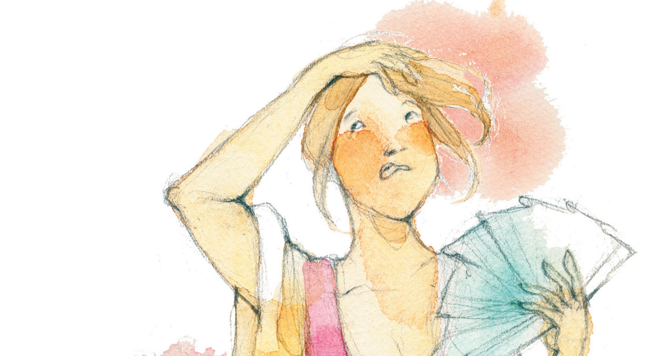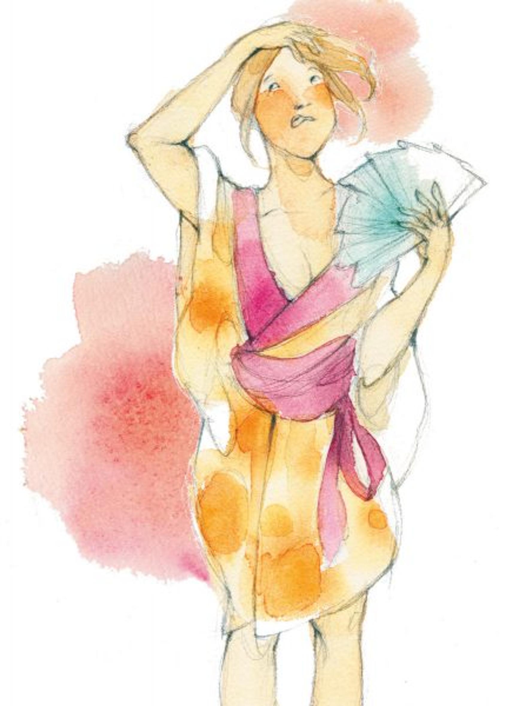 Kasvoja ja kaulaa on pakko pyyhkiä vaivihkaa nenäliinalla, josta voisi pian puristaa nestettä. Oireet yllättävät missä tahansa, eikä niitä voi estää. Vaihdevuodet tulevat jokaiselle naiselle.