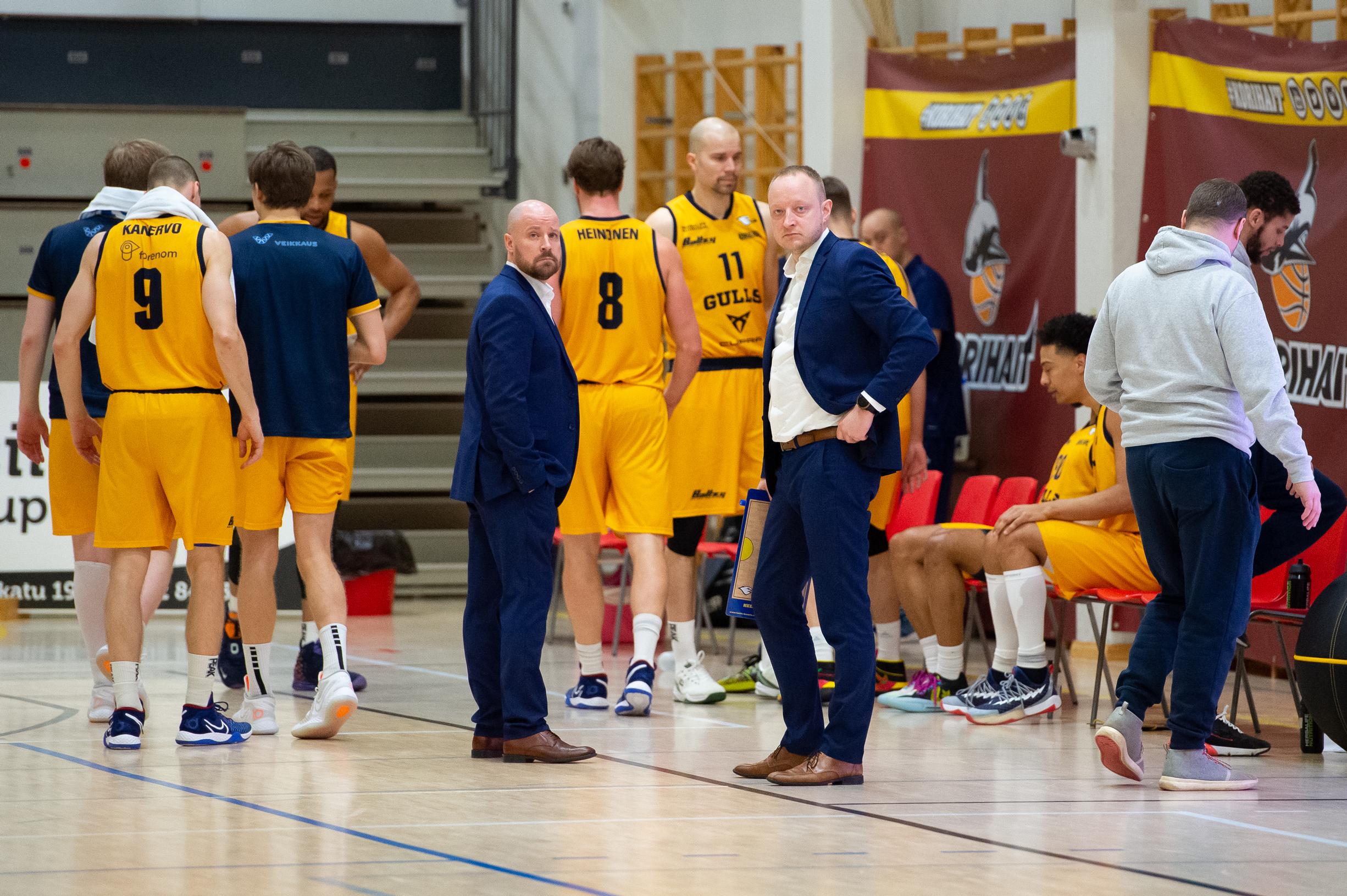 Samaan aikaan joukkueen suomalaisvalmentaja Vertio istuu tyynen rauhallisena penkkijonon päädyssä tarjoten pelillisiä näkemyksiään vahvasti eläytyvälle Rytasin päävalmentaja Giedrius Zibenasille, 41.