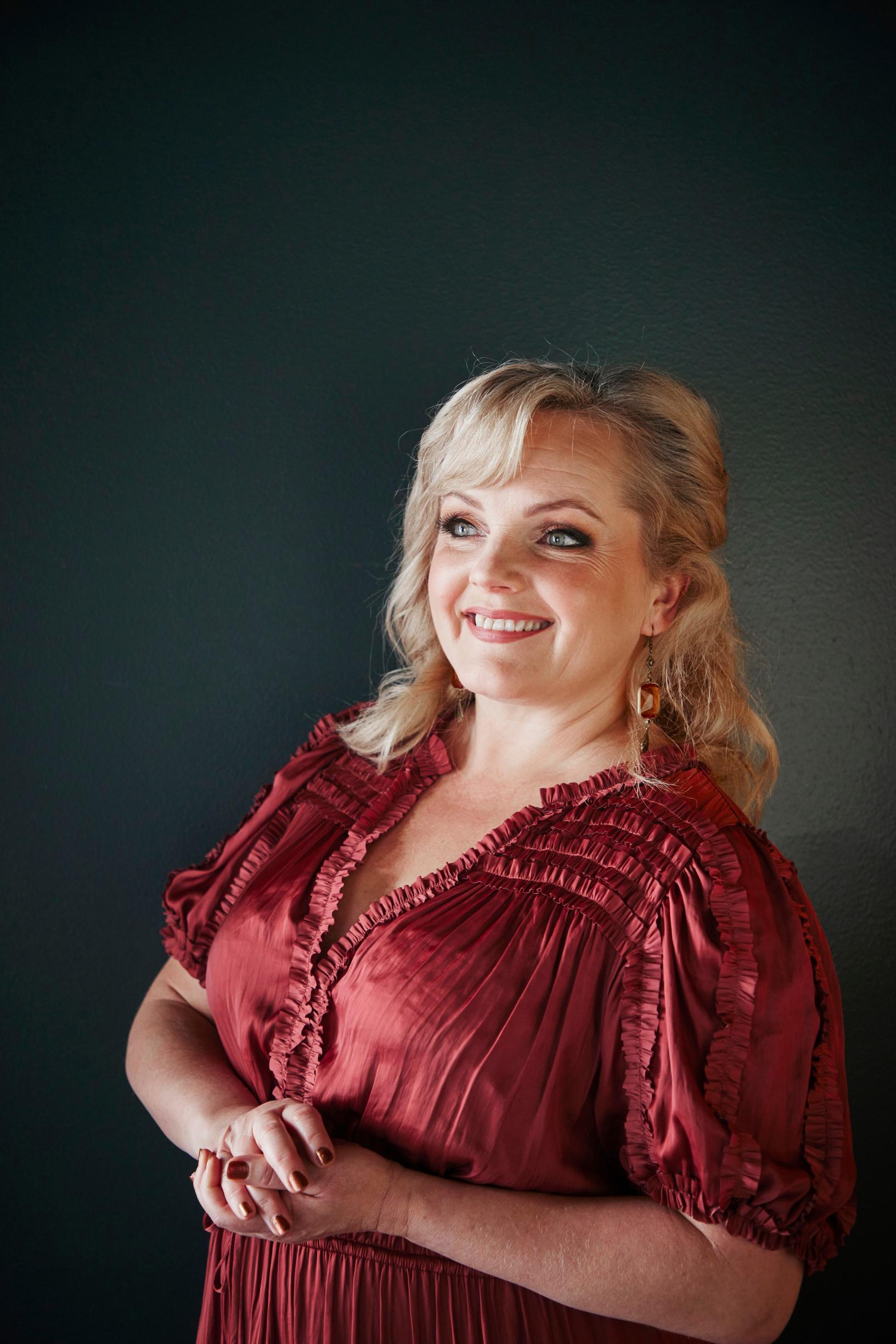 Meikki ja hiukset Krista Stenberg, tyyli Hani Haimii. Punainen mekko Ulla Johnson, My o My Kämp Galleria; sininen mekko Joseph Ribkoff, Villa Tremondo; takki ja mekko By Pias, Haaga; korvakorut Modo Mio; sormus Aino Heiniö.
