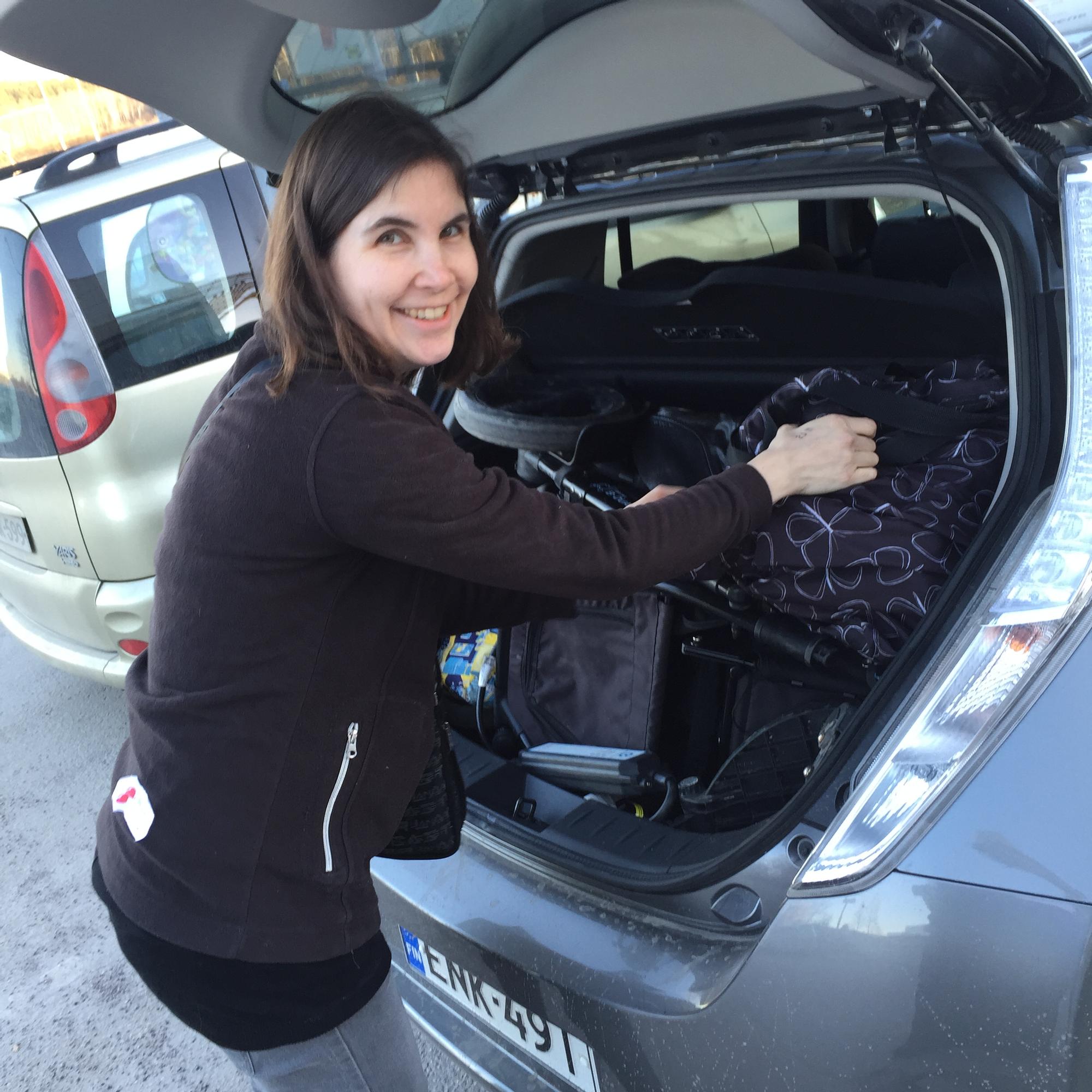 Tavaratilan puolesta Leaf ei ihan sovi vauvaperheen autoksi, vaunut mahtuvat sisään juuri ja juuri kun vähän sovittaa.