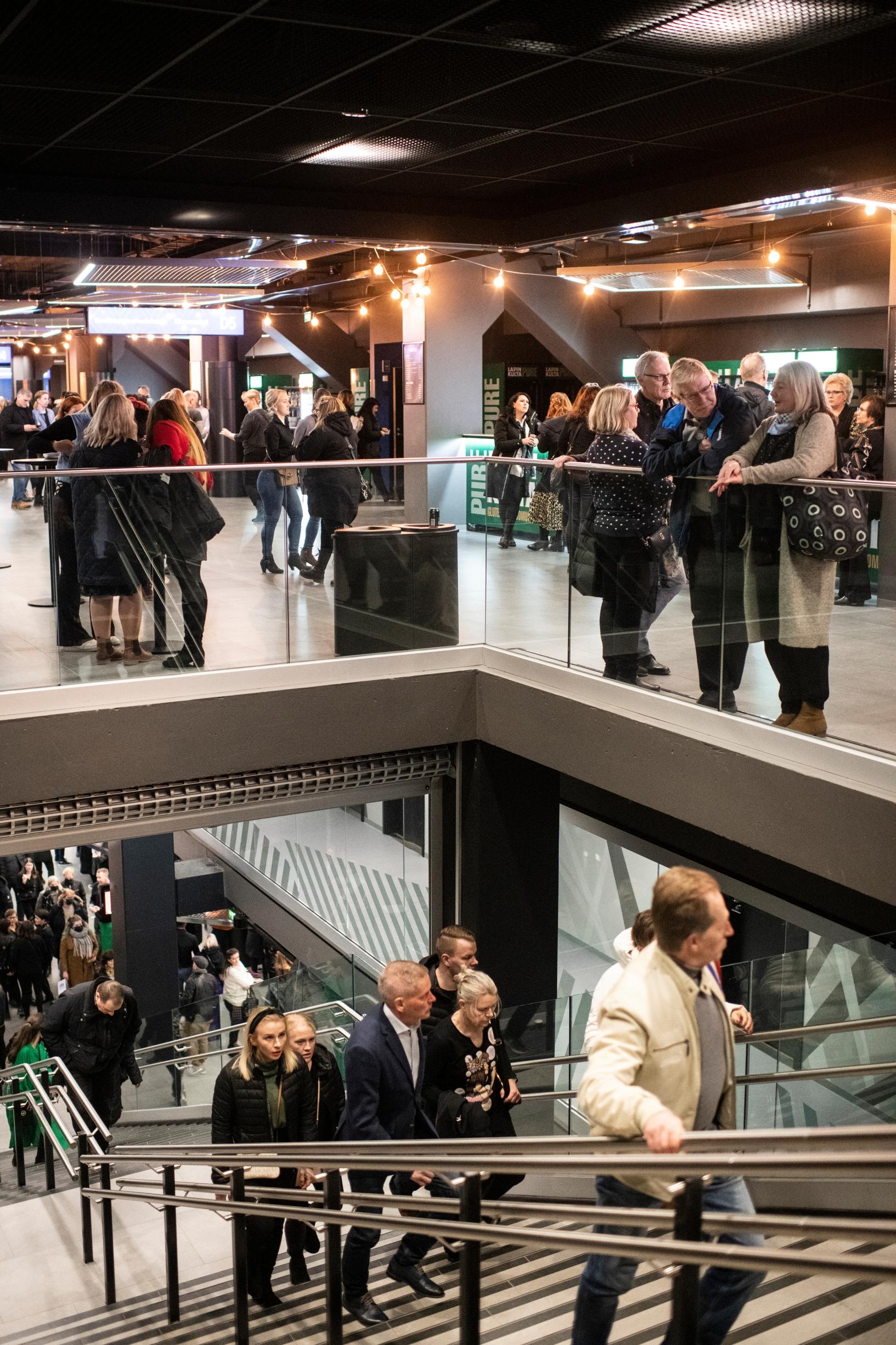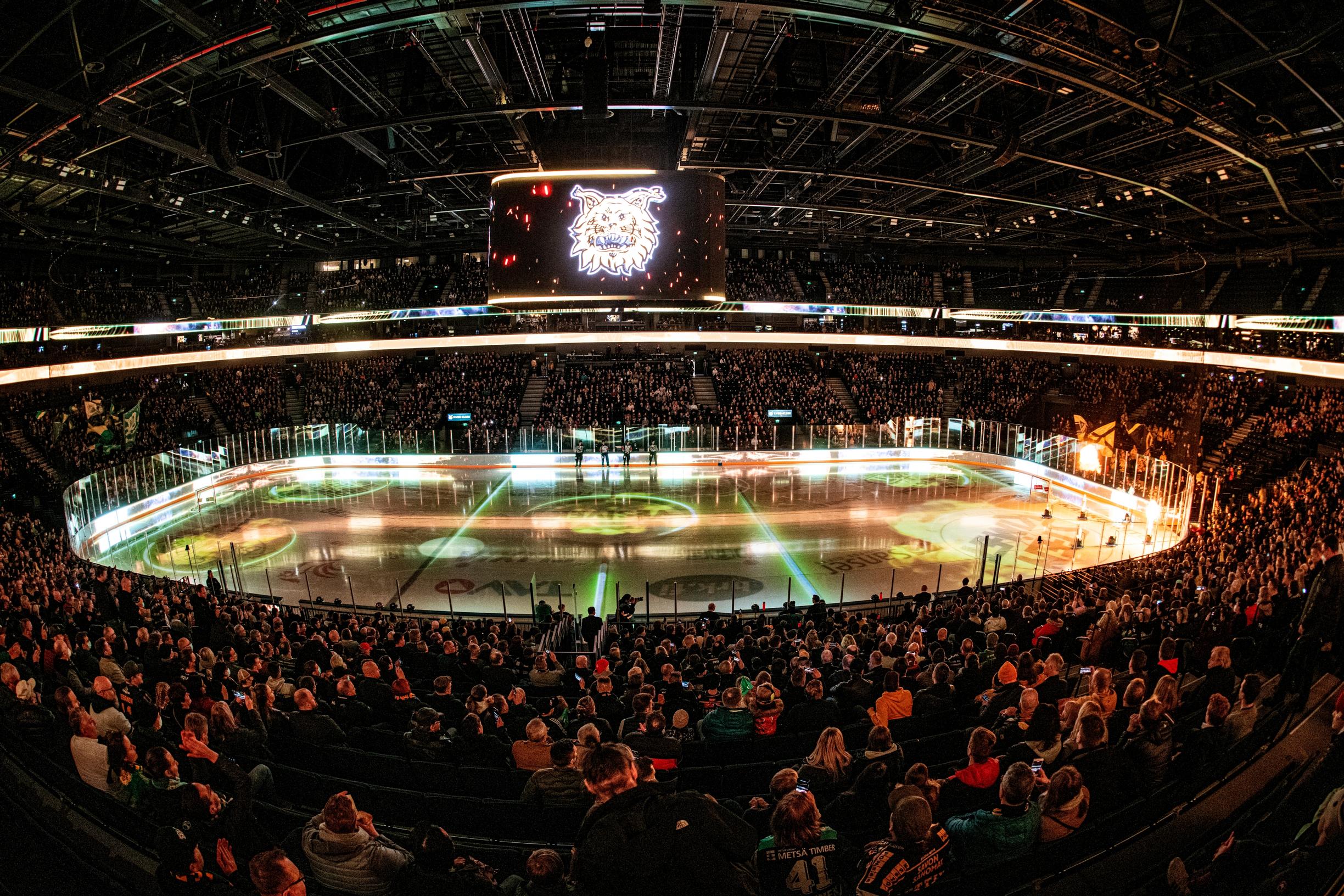 Areenaan mahtuu noin 13 000 ihmistä katsomaan jääkiekko-ottelua. Tässä ottelussa heitä on 10 609.