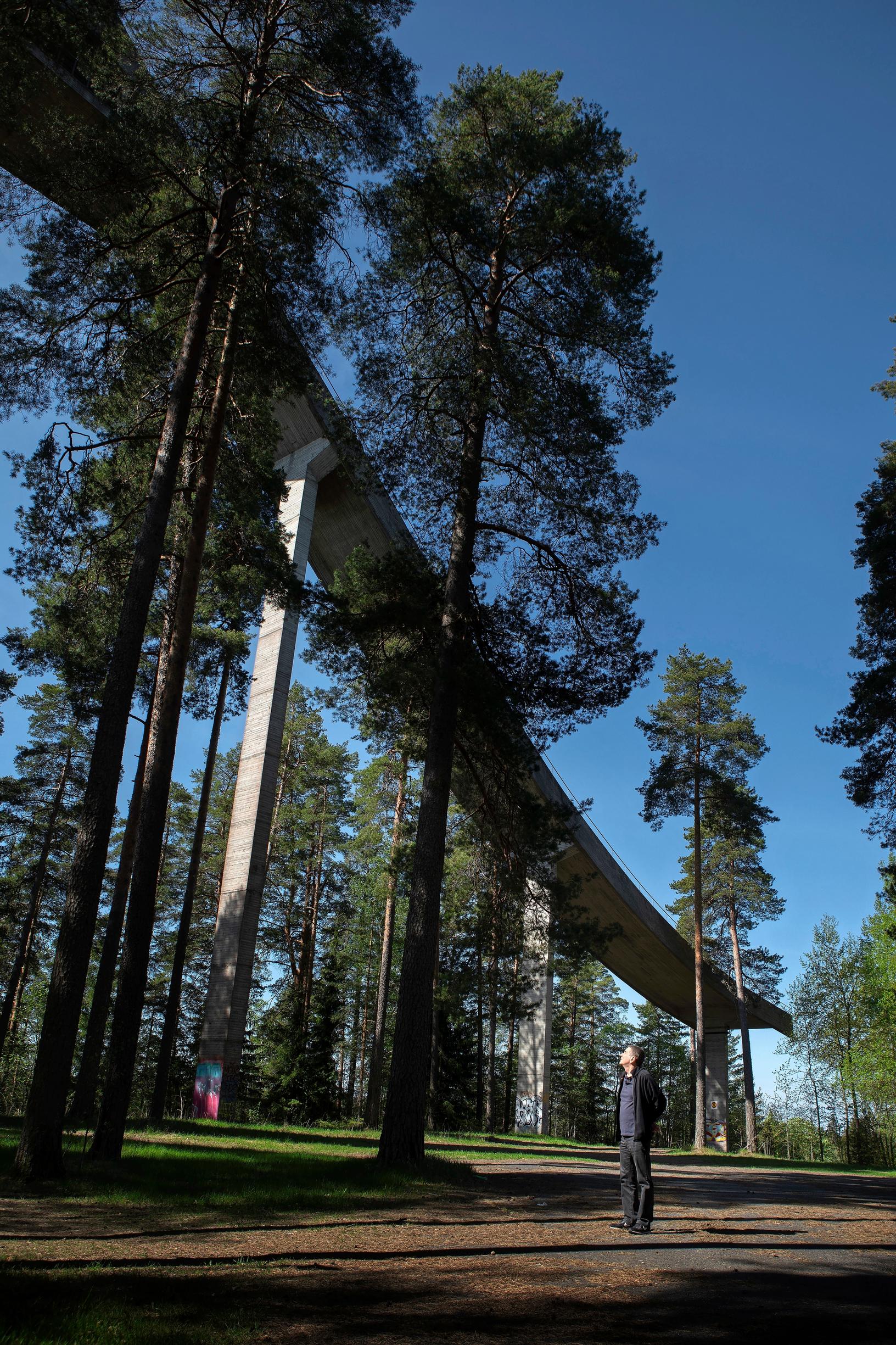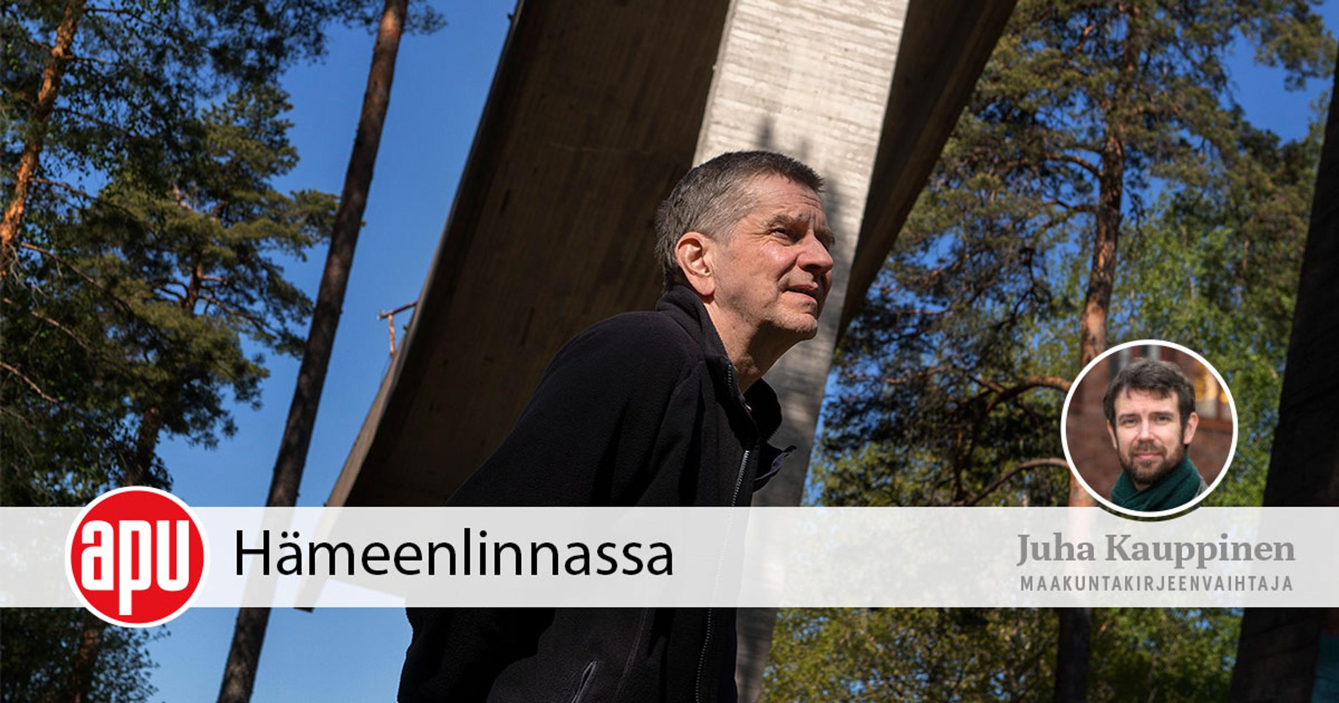 Toinen tärkeä rakennus on Ahvenistonharjun hyppyrimäki, jonka betoniin Jalonen nyt nojaa. Hyppyrimäki on Hämeenlinnan maamerkkejä. Pirulliset sanovat, että se on kaupungin ainoa asia, joka on osattu rakentaa heti riittävän isoksi.