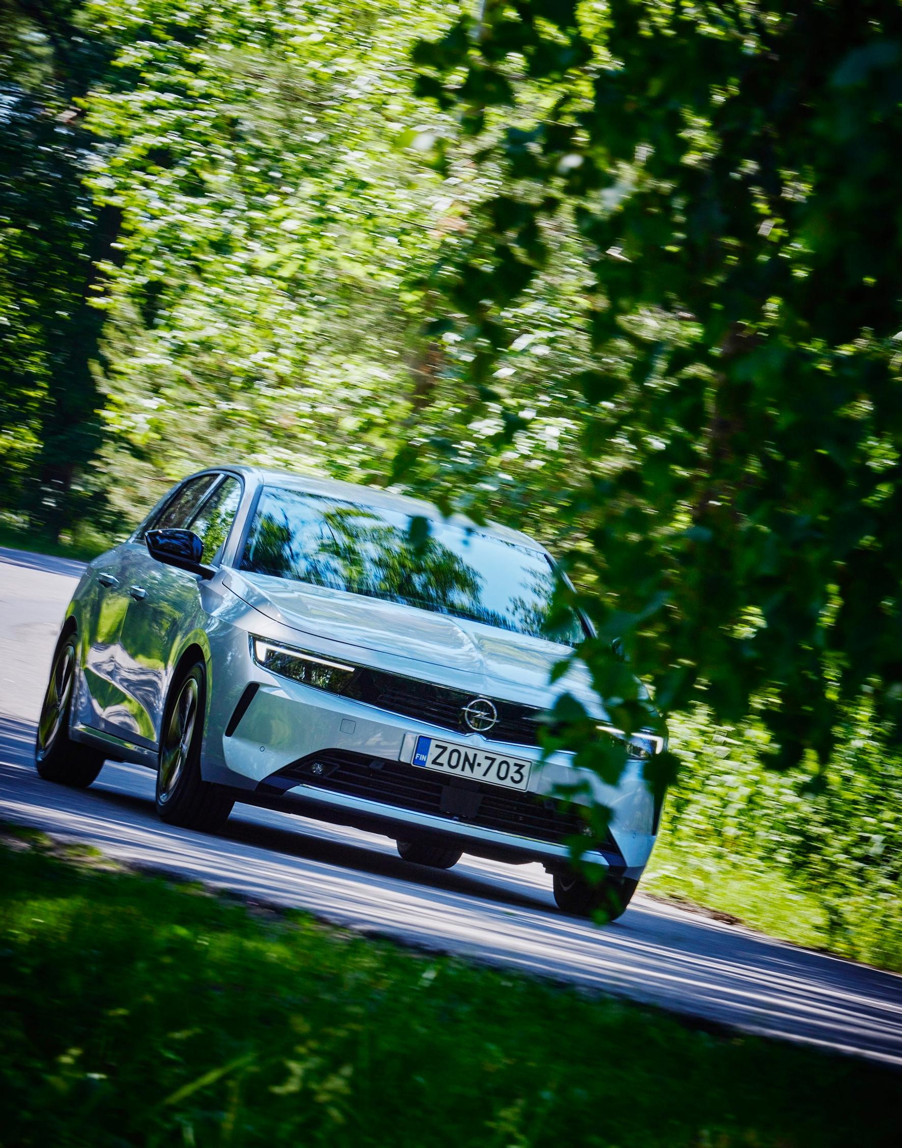 Astran jousitus on säädetty saksalaisittain melko töpäkäksi, joten pienellä kuormalla hieman pintakovalta ajotunnelmalta ei voi välttyä. Muutoin Astralla ajaminen on suoraviivaisen helppoa ja ongelmatonta, ja autosta välittyy ennen kaikkea mutkattomasti lähestyttävän perusauton fiilis. Innovation Plus -varustetasossa tuleva mukautuva tasanopeussäädin toimii notkeasti, ja on vain hieman liian varovainen vaativammissa tilanteissa – turvallisuus ennen kaikkea. Hallintalaitteita ei Astrassa tarvitse hapuilla, ja matkustamo pysyy kohtuullisen hiljaisena jopa moottoritienopeuksissa. Paritus kännykän ja auton välillä sujuu helposti, ja varusteista jäi lähinnä kaipaamaan luurin langatonta latausalustaa sekä navigointia. Jälkimmäisen lisähinta on noin 800 euroa, mutta yllättävää kyllä, latausalustaa ei ole ihan vielä saatavilla – se tulee valinnaisvarusteeksi vasta mallivuoden 2023 hinnastoon.