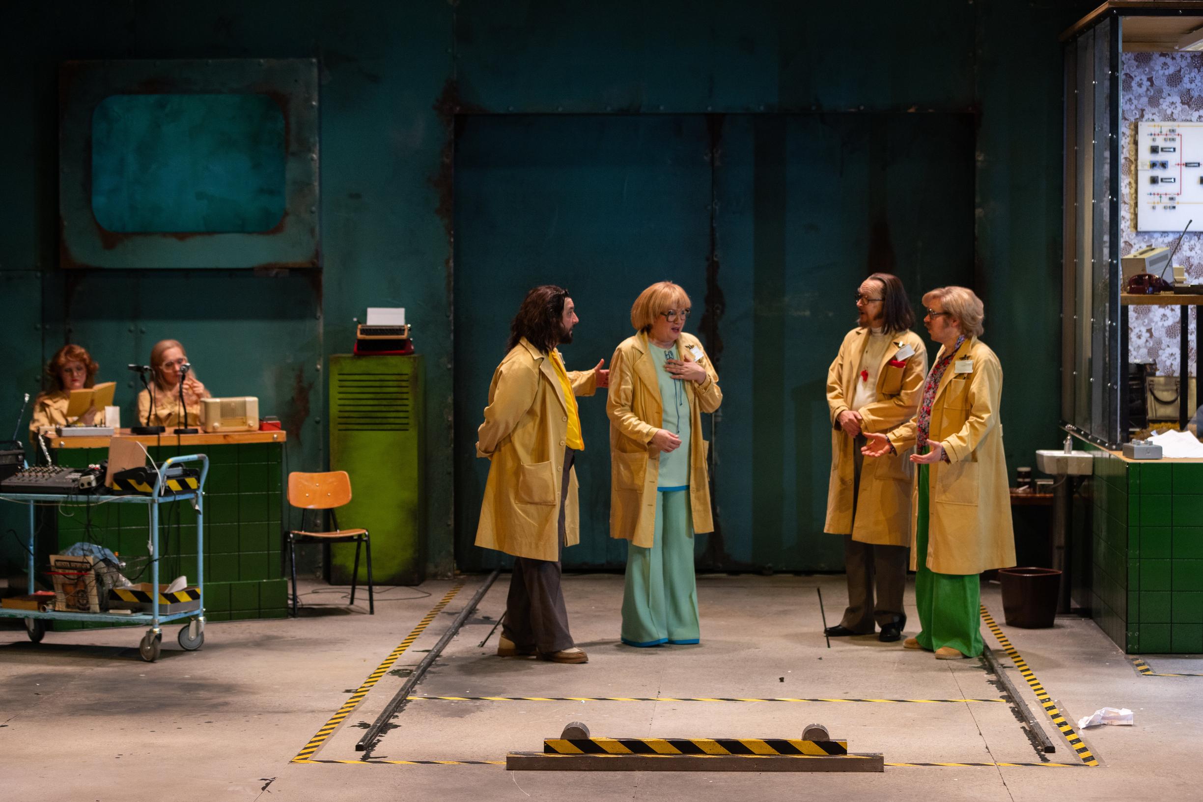 Näyttelijät pitävät yleisön mielenkiinnon herkeämättä yllä. Joonas Heikkinen tuo energiaa, Katariina Kaitue monipuolisuutta, Heikki Pitkänen nyansseja ja Janne Reinikainen on pokerinaamaisena joukon hiljainen tunnejohtaja. Kiinnostava yksityiskohta on, että roolihahmot on nimetty esiintyjien omilla etunimillä. 1970-luku on tuotu lavalle vaatteissa (pukusuunnittelu Auli Turtiainen) ja pomon toimiston sisustuksessa (lavastussuunnittelu Katri Rentto ja Akse Pettersson), täydellisistä kampauksista puhumattakaan (naamioinnin suunnittelu Minttu Minkkinen). Etenkään Kaituetta ei ole tunnistaa!