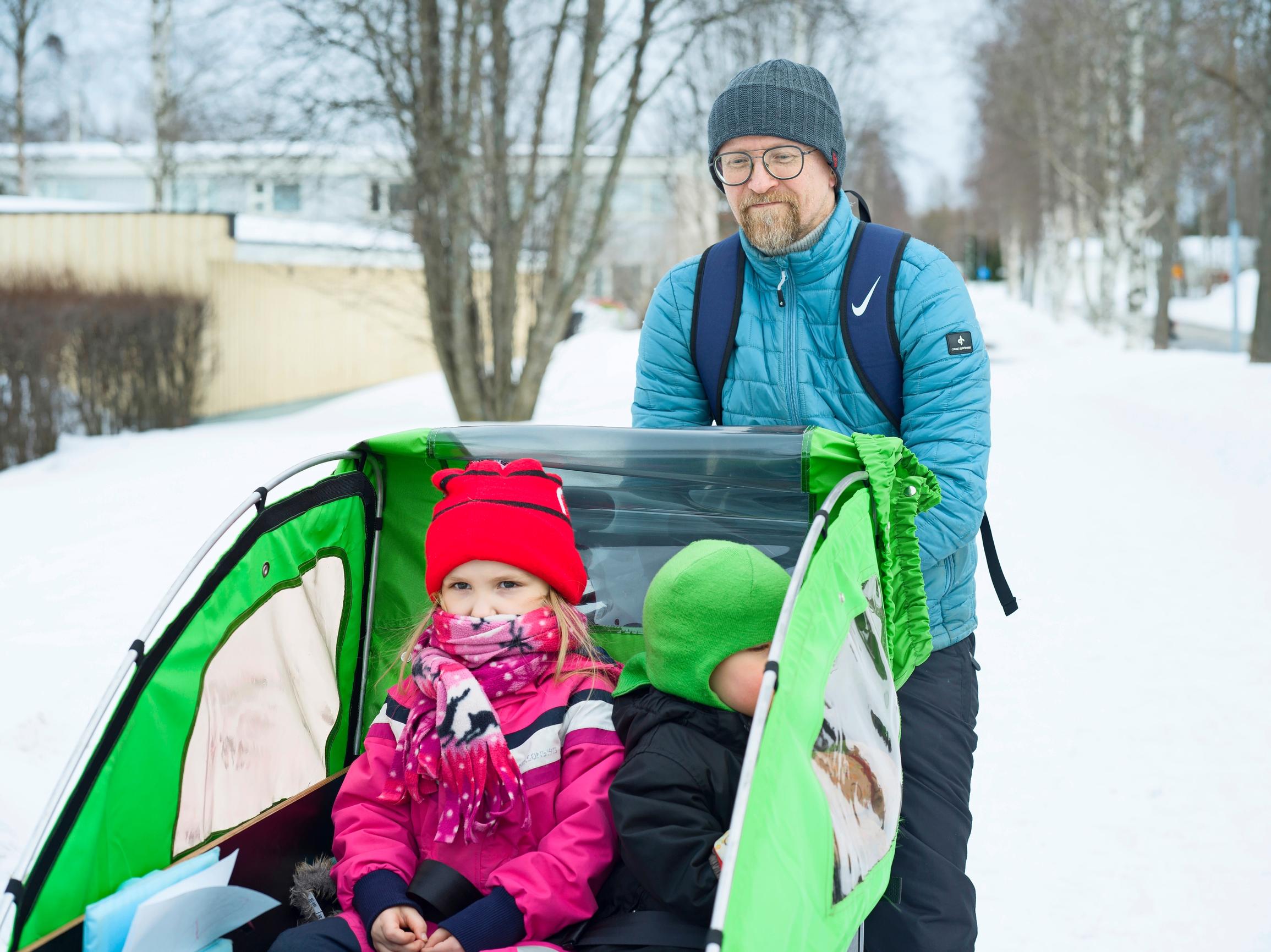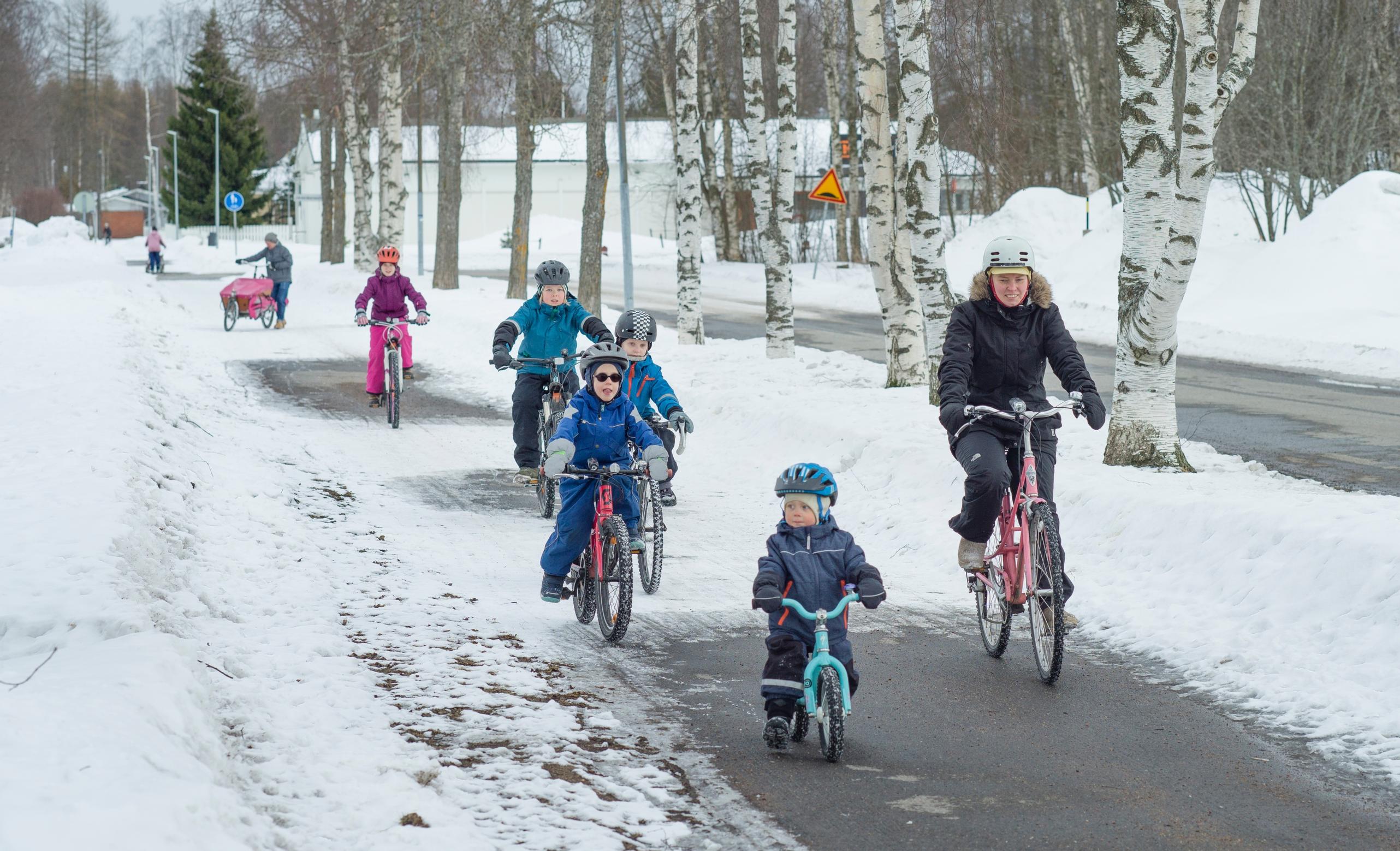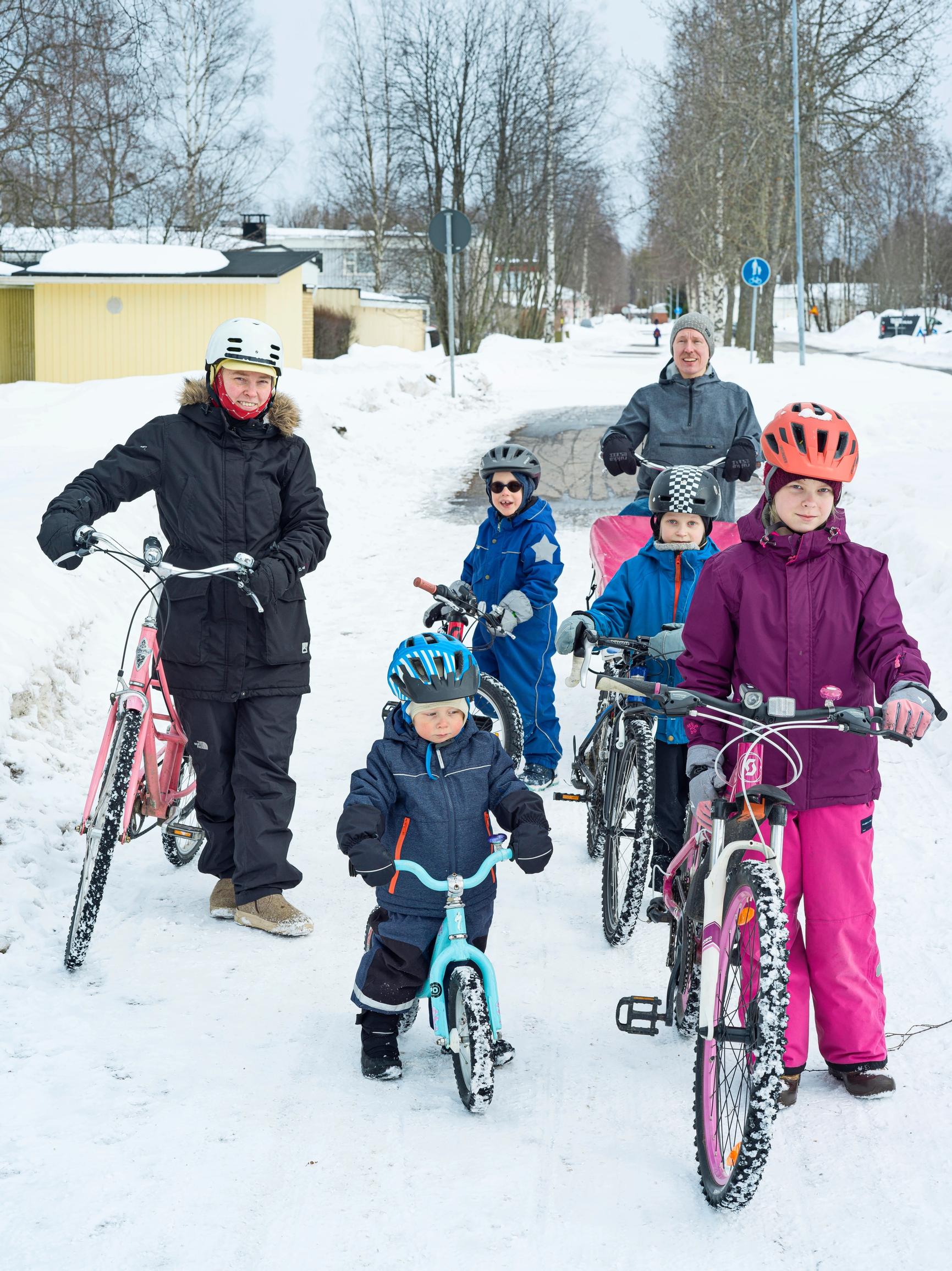 Kokon perhe pyöräilee läpi talven kuten moni muukin oululainen. Pohjoisessa kaupungissa pyöräillään ympäri vuoden ahkerammin kuin missään muualla Suomessa. Se on vaatinut määrätietoisia valintoja.
