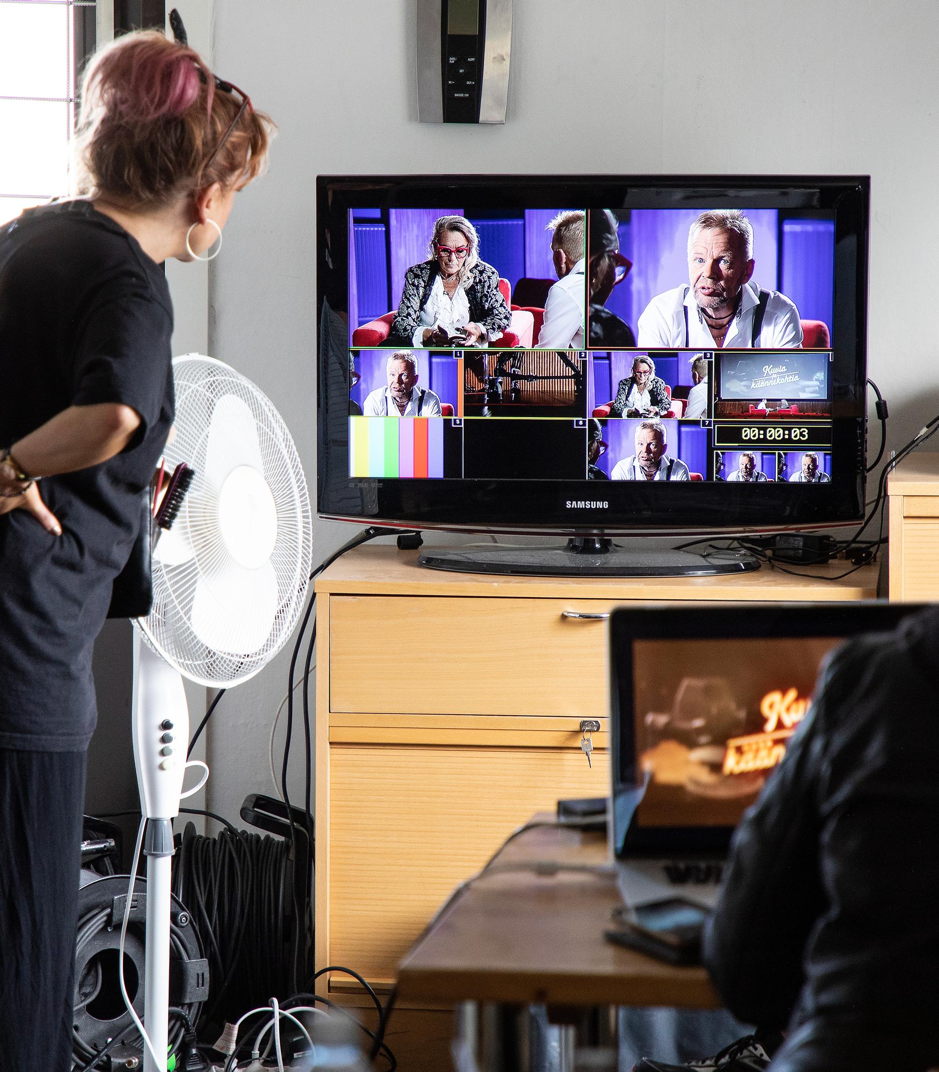 – Taiteilijoita ovat ne, jotka taiteilevat jäällä kesärenkailla. Ja minua ei nyt uiteta missään liemessä! Pössäytetään nyt nauhoitus käyntiin, ja jos minä en näe kelloa nauhoituksen aikana, lähden kotiin, hän ohjeisti Vartiaa meikistä valmistuttuaan.
