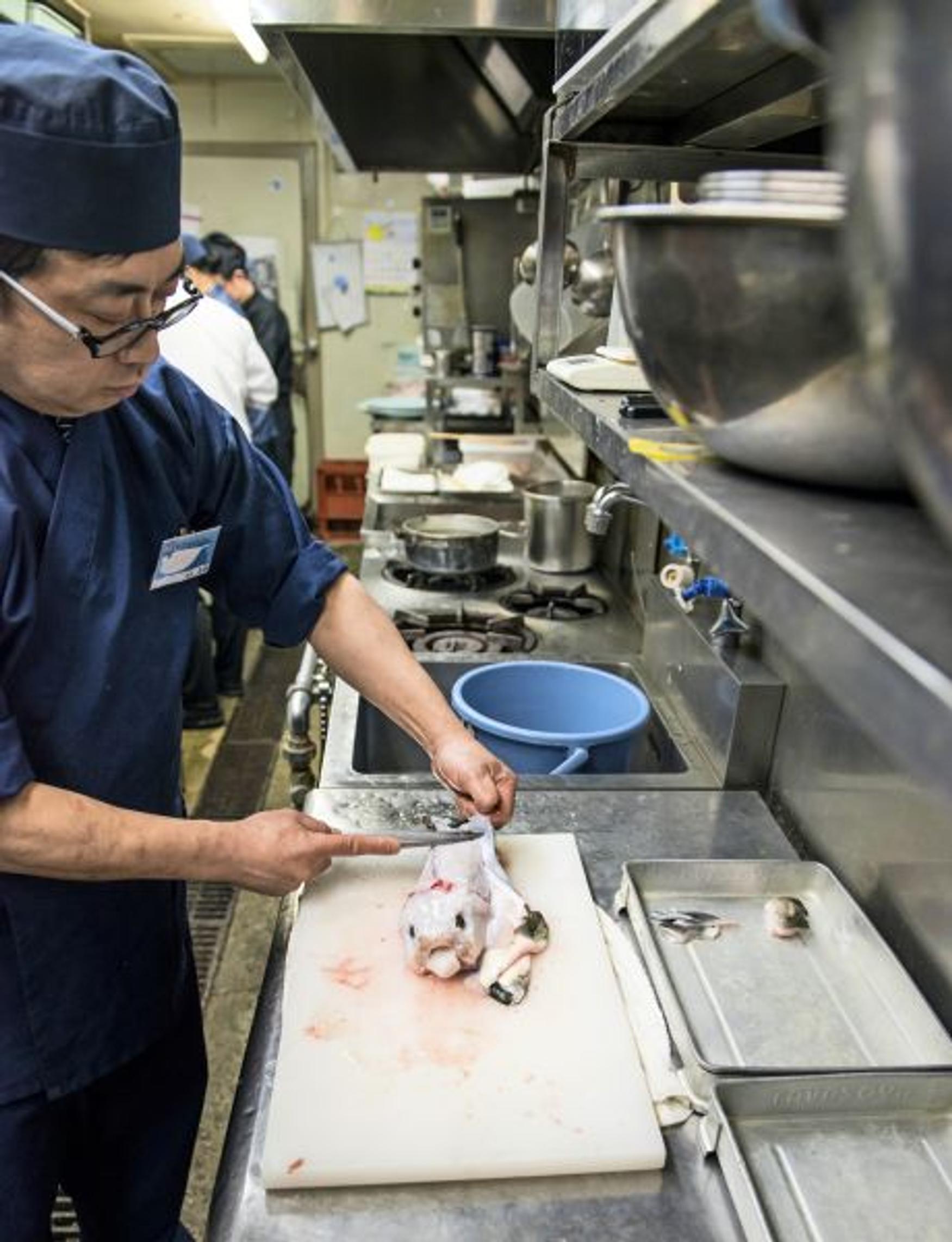 "Kestää kaksi vuotta saada kala täyteen mittaan, hieman alle kilon painoiseksi. Siksi teemme tilaukset kahdeksi vuodeksi eteenpäin."Keittiömestari Yasuhiko Takahashi