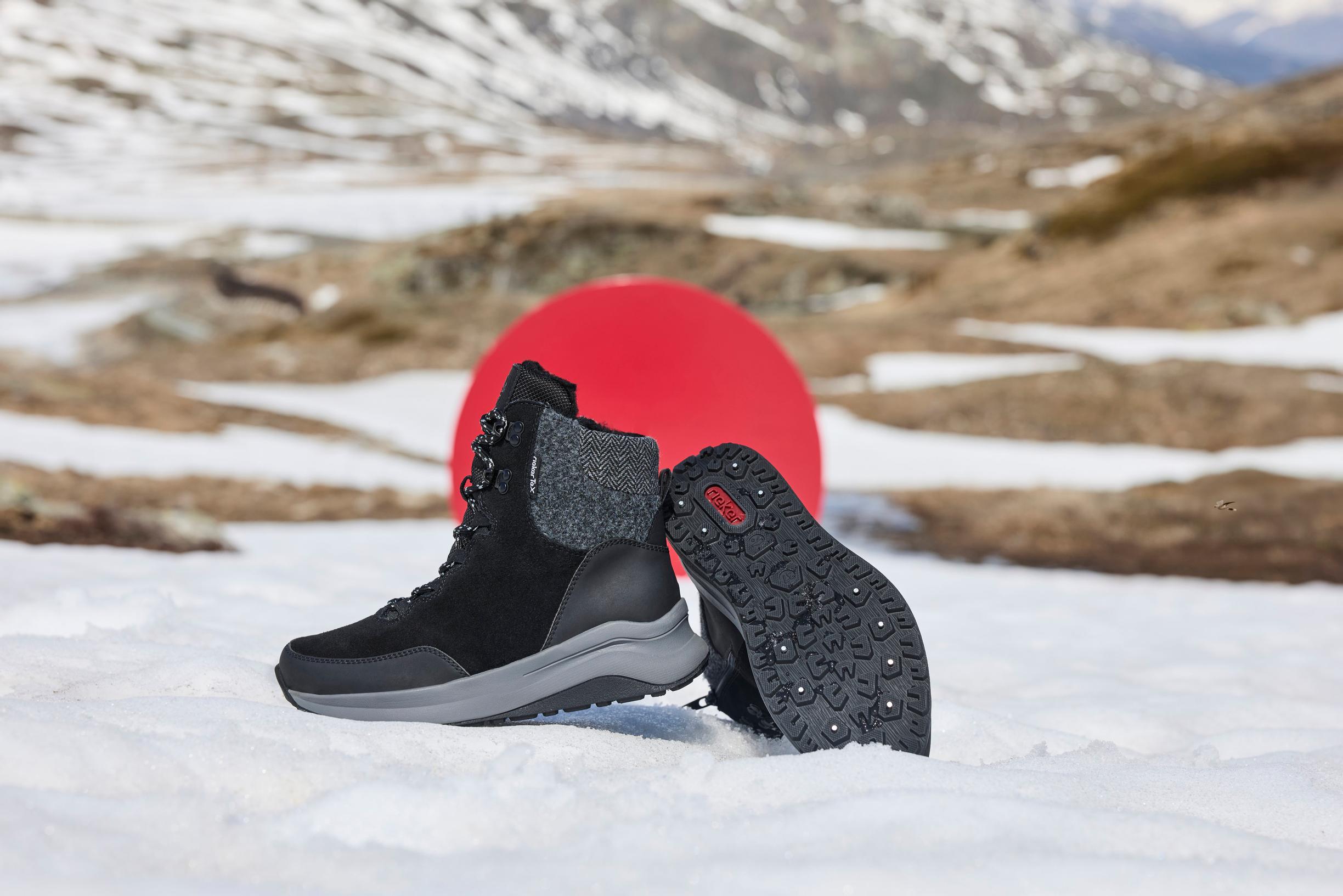 Riekerin uutuusjalkineet mukautuvat talven vaihteleviin olosuhteisiin. Ne lisäävät varmuutta liukkailla pinnoilla, pitävät jalat lämpiminä myös kylmällä säällä ja istuvat täydellisesti talviseen kaupunkityyliin. Riekerin kääntönastamalleissa on kosteudelta suojaava TEX-kalvo ja lämmin vuori.