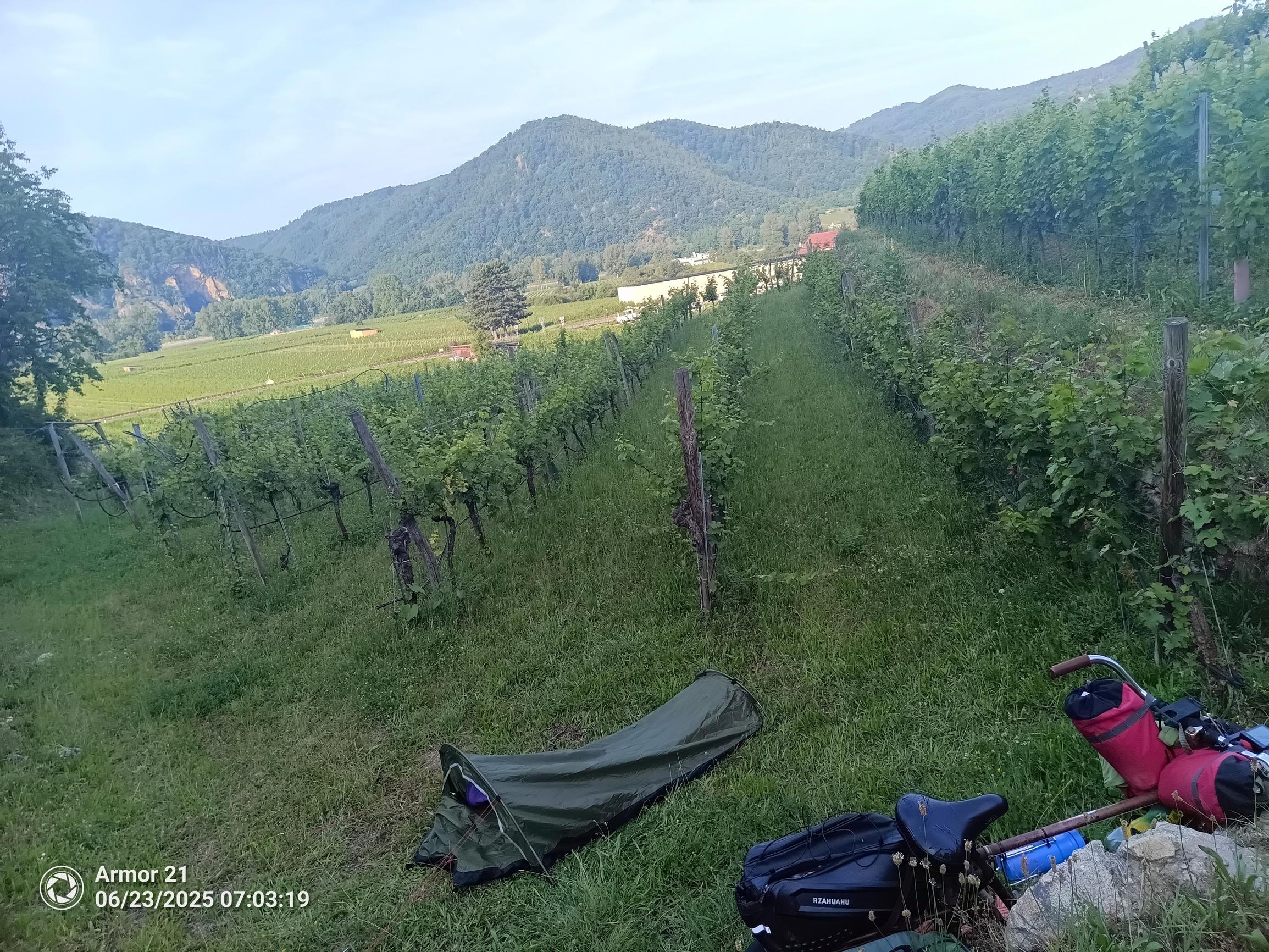 Halpojen majatalojen ja ystävien lisäksi yösijoja on löytynyt muun muassa kirkkorakennusten seinänvieriltä, viinitarhasta ja tienvarsipusikoiden suojista. Saamistani kuvista löytyy myös otos, jossa ennestäänkin pienen vatsan muuttuminen pelkäksi roikkuvaksi nahkaksi suorastaan pelästyttää. Miehen toinen reisi on kaatumisten jälkeen yhtä suurta mustelmaa.