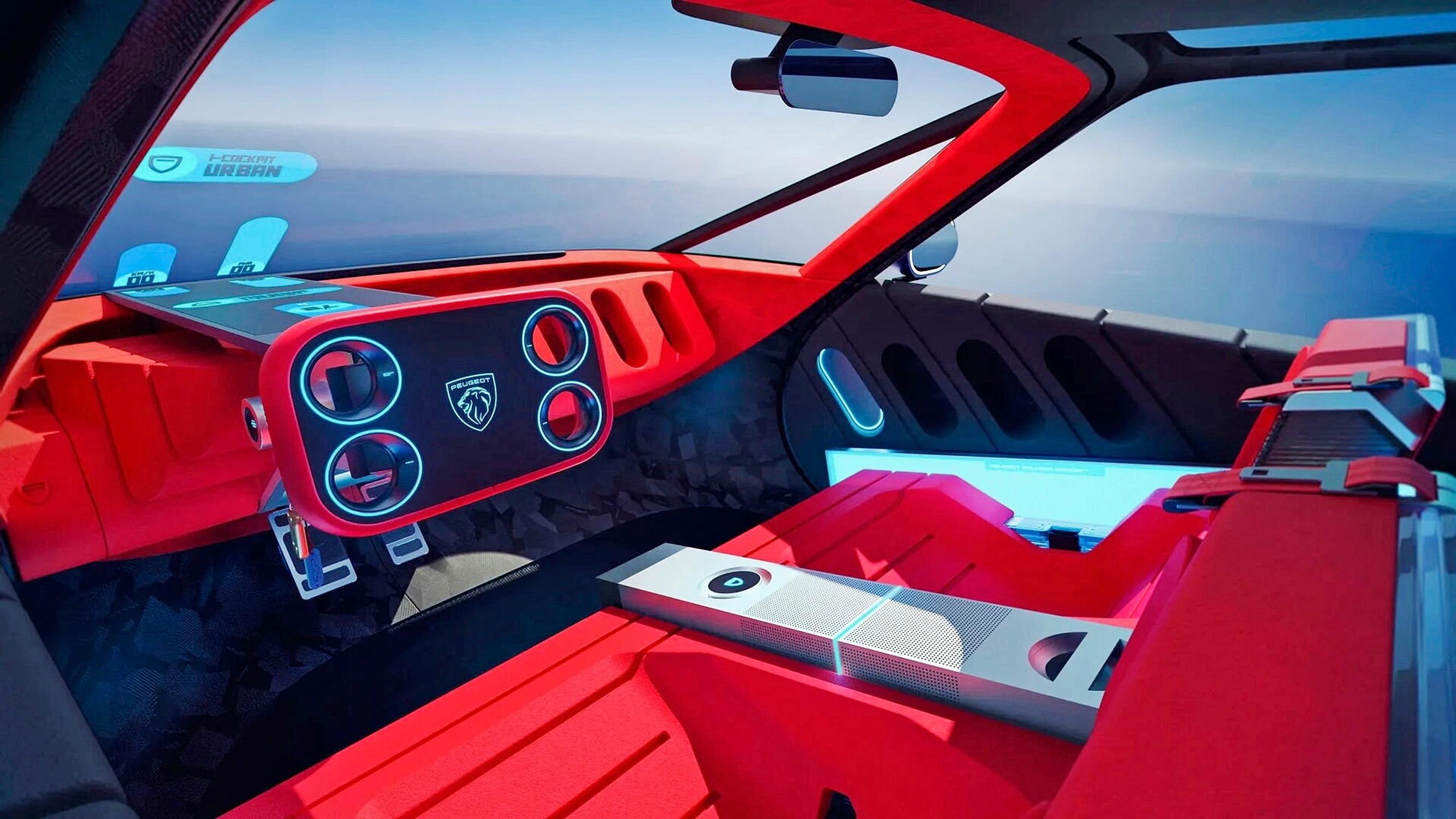Huomiota konseptissa herättää myös se, ettei mittaristoa tai edes kosketusnäyttöä ole enää lainkaan. Kaikki tarvittava tieto heijastetaan suoraan tuulilasiin. Peugeotin mukaan HUD vastaa 31-tuumaista näyttöä.