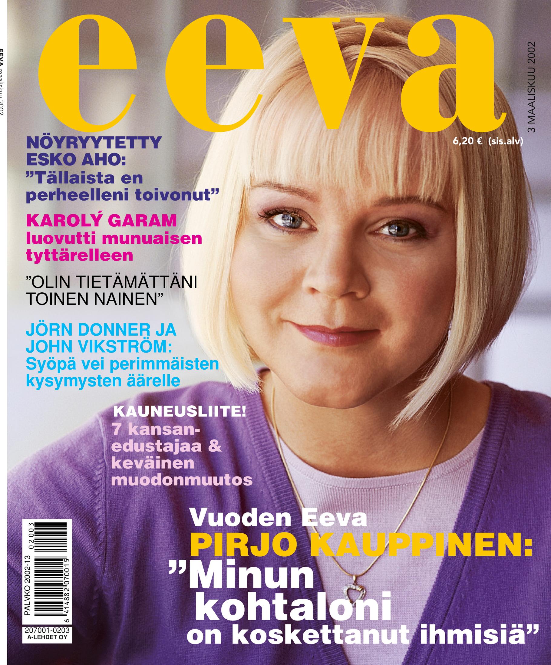 Häkeltynyt Pirjo oli myös maaliskuussa vuonna 2002, kun Eevan lukijat valitsivat hänet ylivoimaisella äänivyöryllä Vuoden Eevaksi.