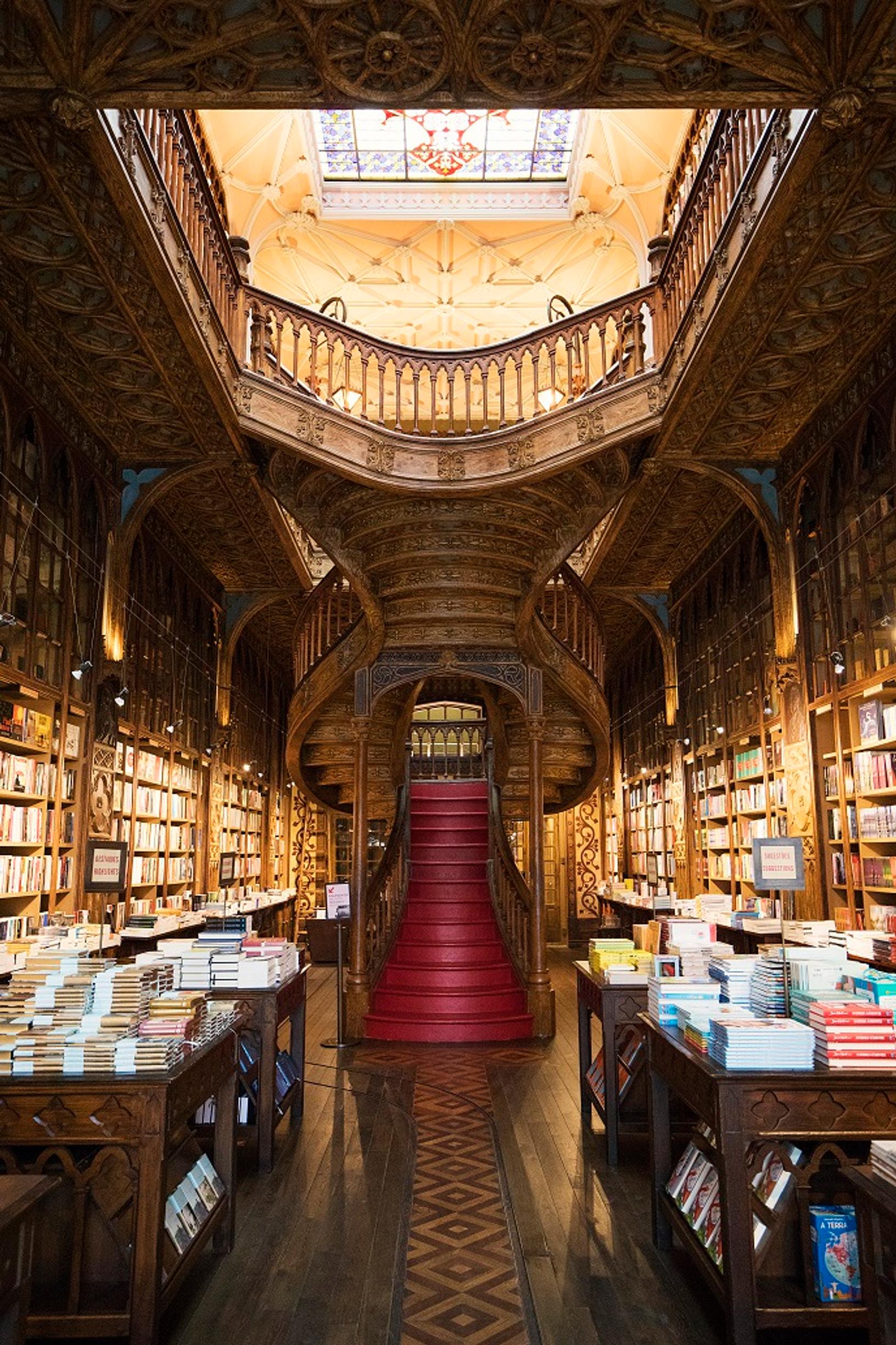 Livraria Lello, Rua das Carmelitas 144, www.livrarialello.pt. Pääsylippu 3 euroa, jonka saa takaisin kirjaostosten hinnassa.