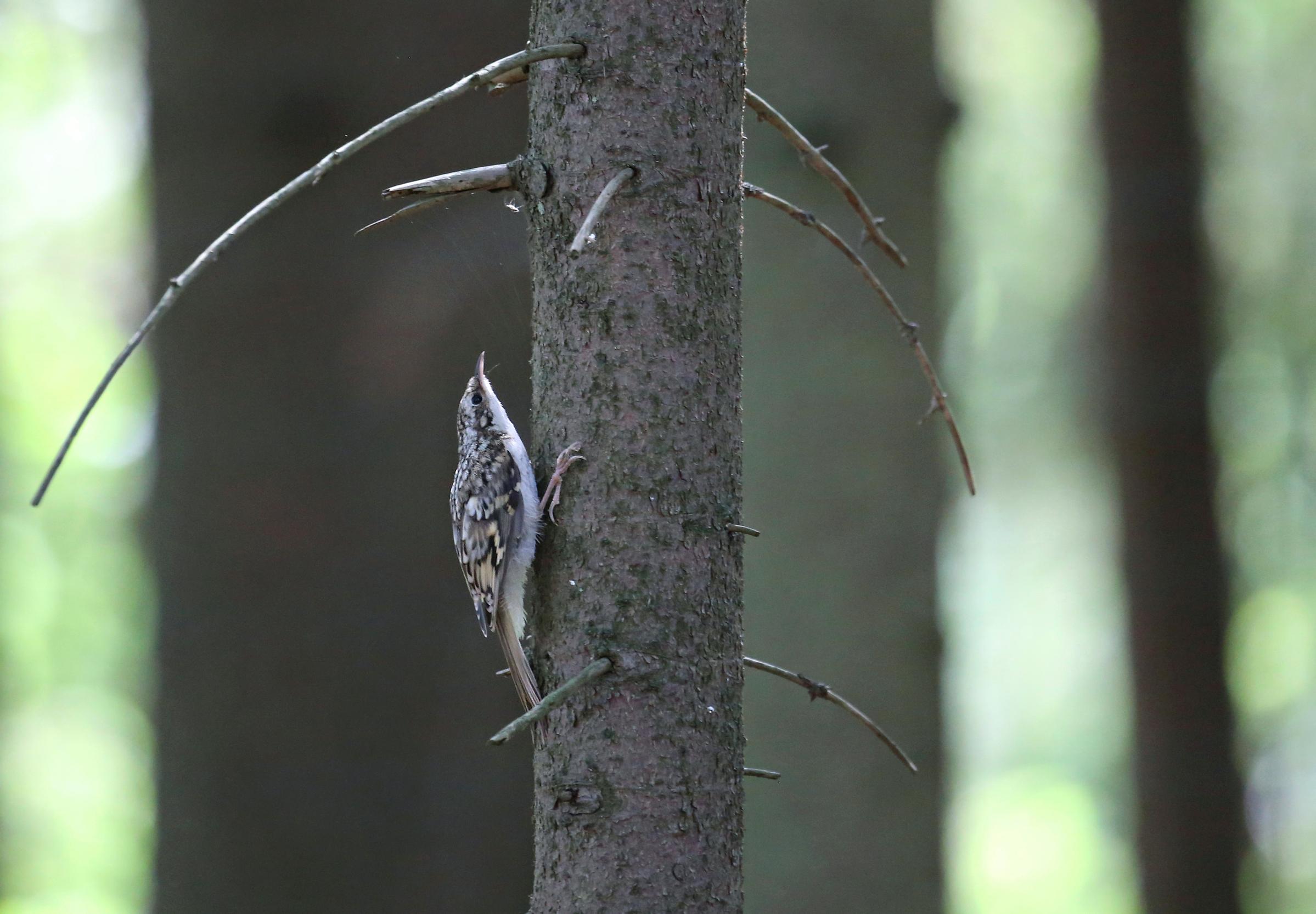 Puukiipijän vaalea vatsapuoli puolestaan heijastaa valoa puun rungolle linnun etsiessä ravintoa kuusikon hämärässä.