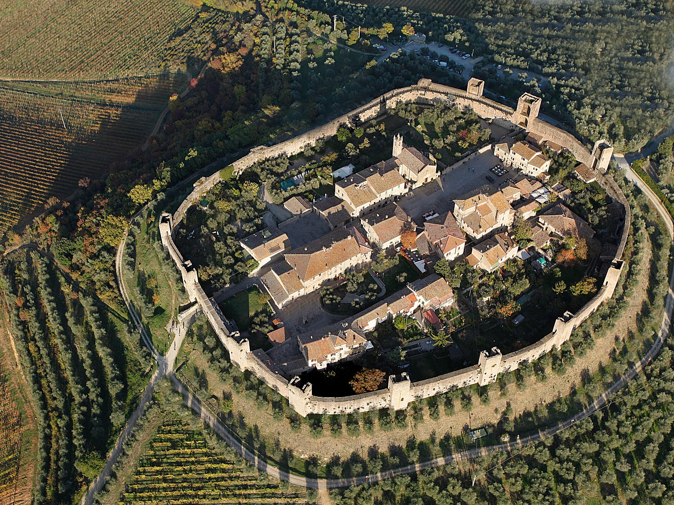San Gimignanosta vaellus jatkuu sorateillä, joita reunustavat romaaniset kirkot. Kuvankauniissa Abbadia a Isolan kylässä on jo vuonna 1001 perustettu sisterssiläisluostari, joka on nykyään viihtyisä hostelli. Vaellus jatkuu pitkin kauniita vehnäpeltoja kohti Monteriggionin kaupunginmuureja.