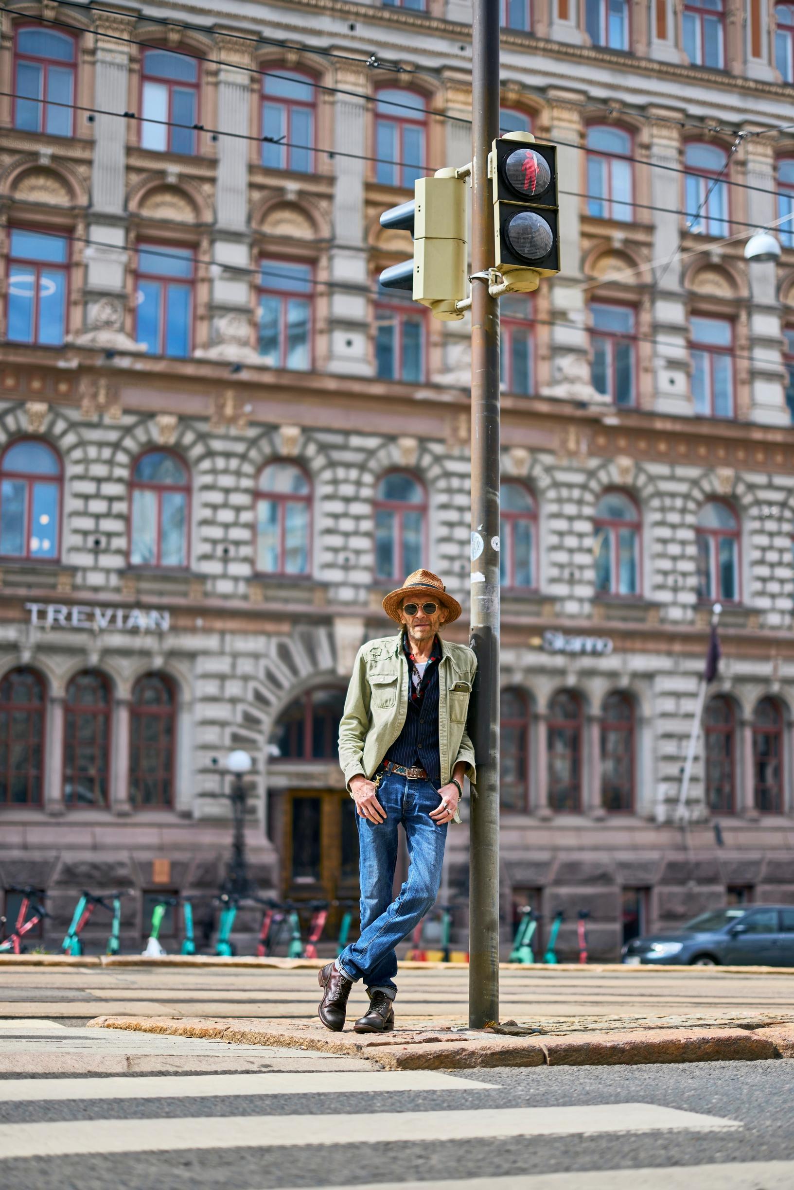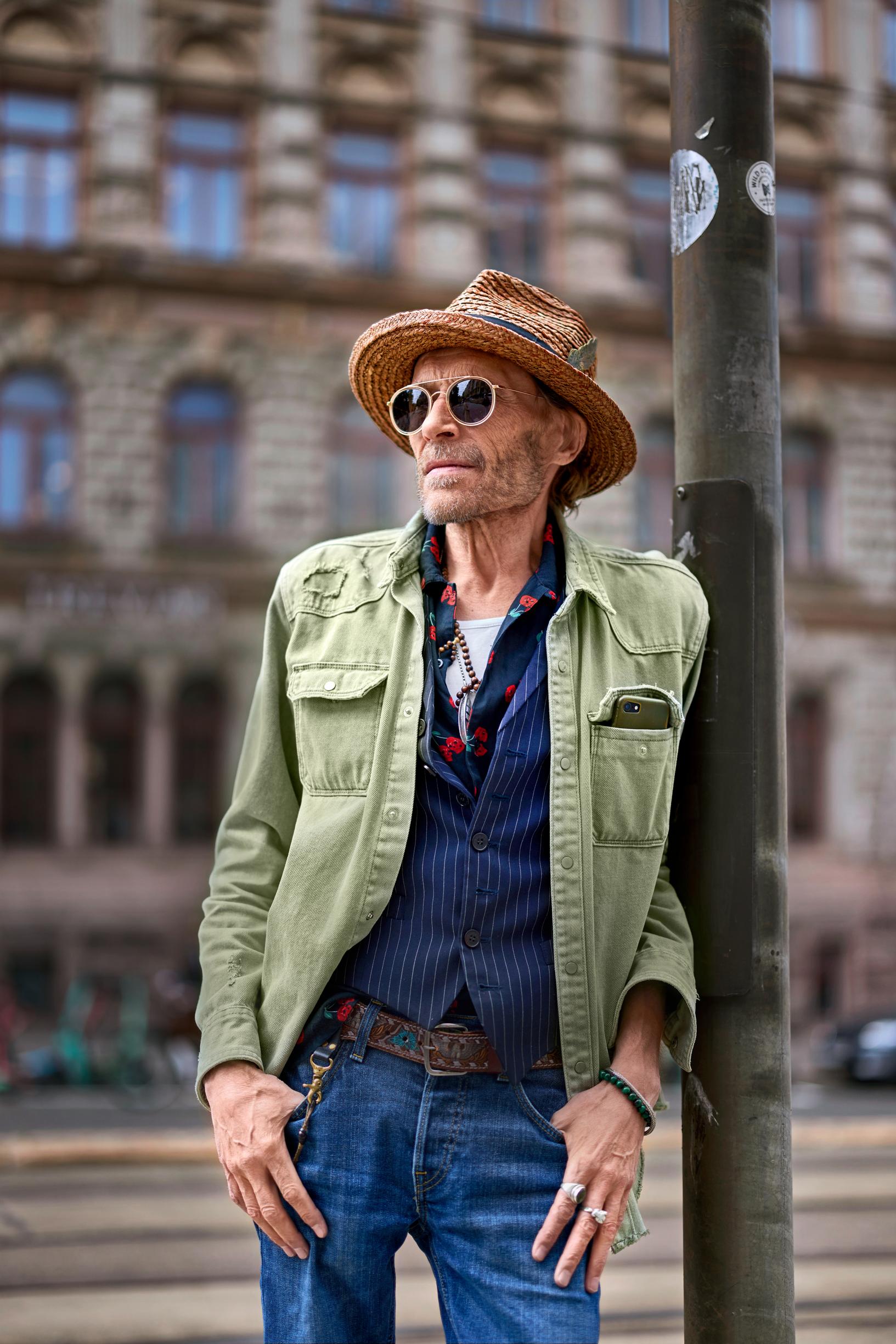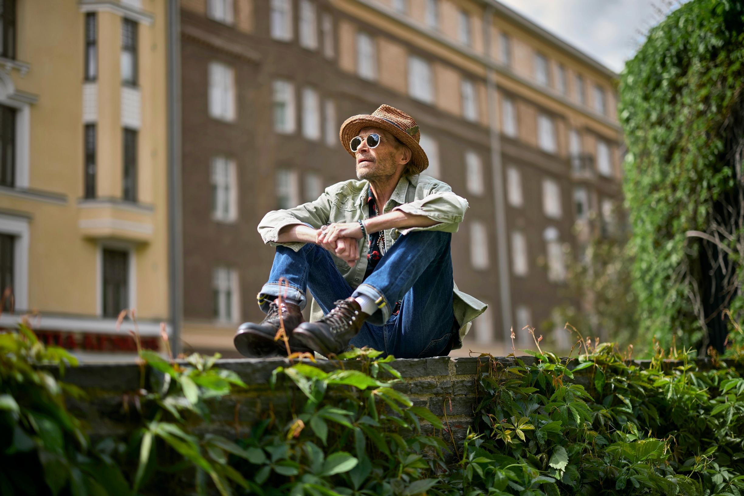 Komea hattu erottuu kaukaa. Sitä koristaa värikäs papukaijan sulka, joka hohtaa auringonvalossa kuin sudenkorento. Näyttelijä Ilkka Heiskanen, tuttavien kesken Ilu, näyttää farkkurotsissaan ja pyöreissä aurinkolaseissaan bluesrokkarilta, joka on juuri putkahtanut ulos hämyiseltä klubilta Nashvillessä.